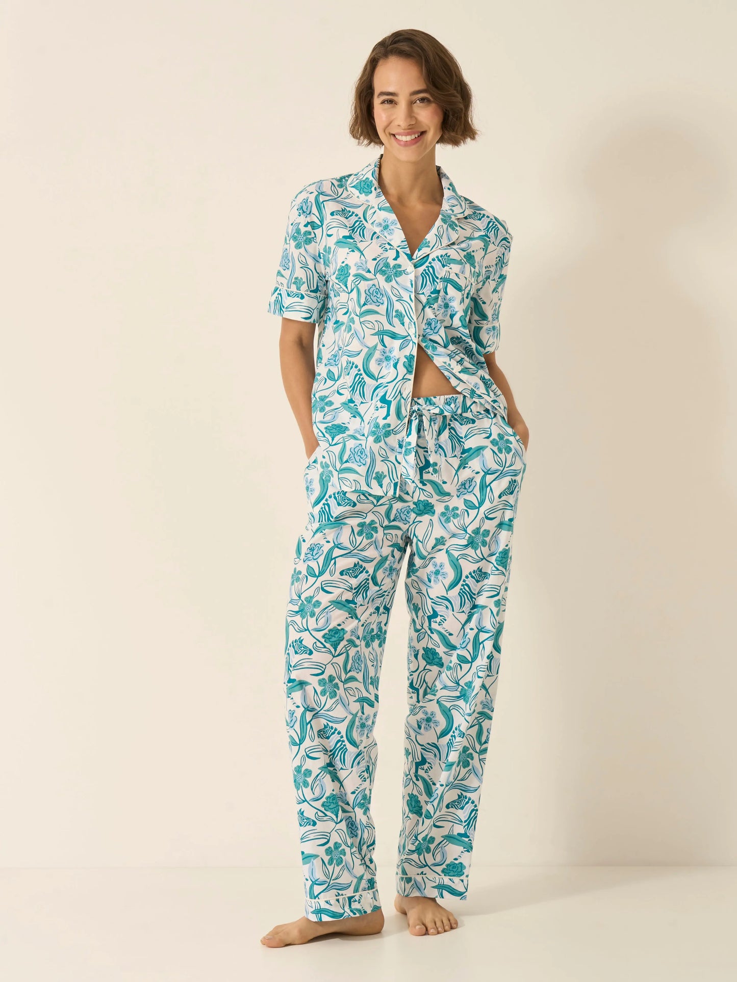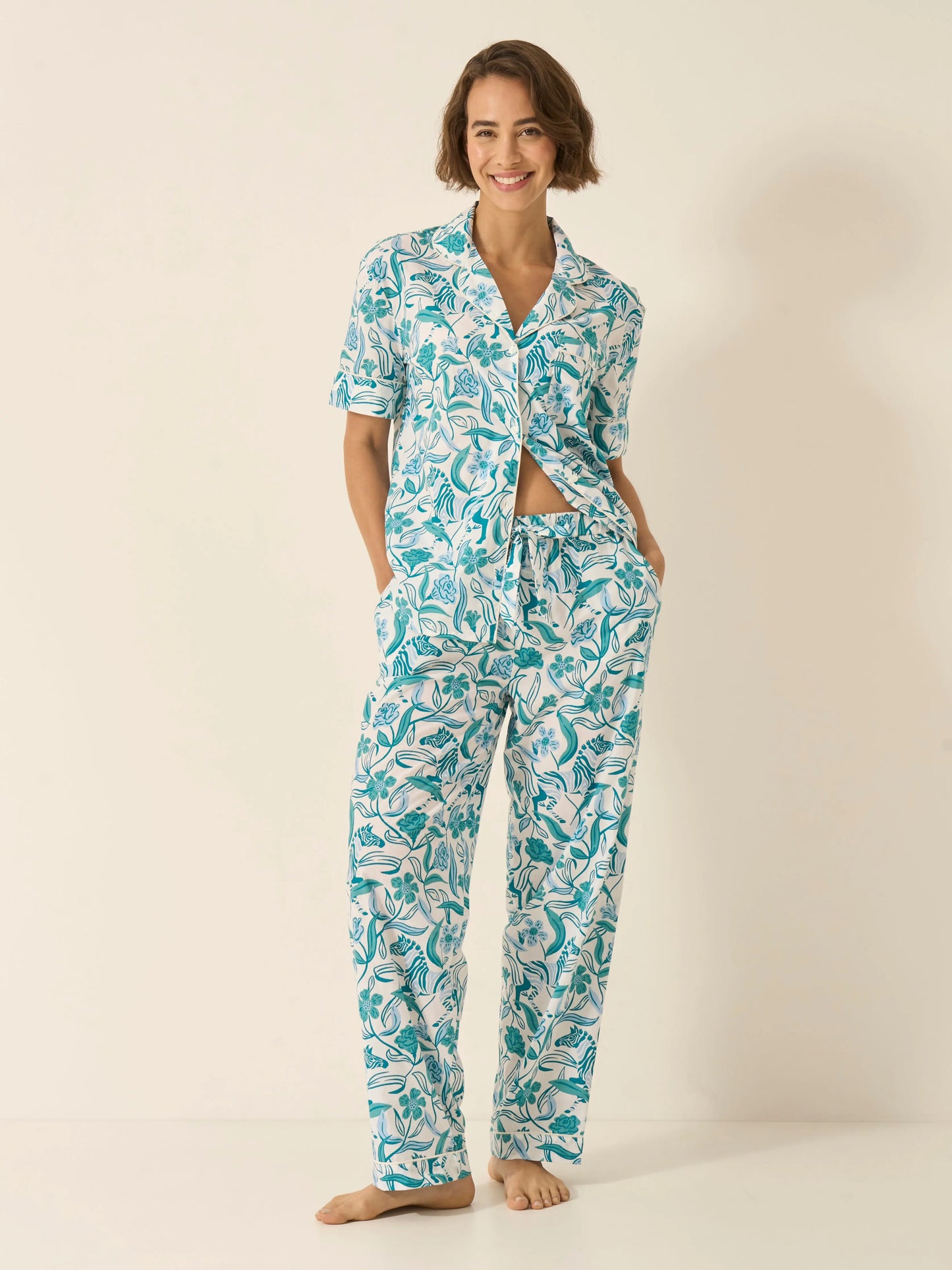 Boho Zebra Women's Short Sleeve Organic Cotton Pyjama Trouser Set