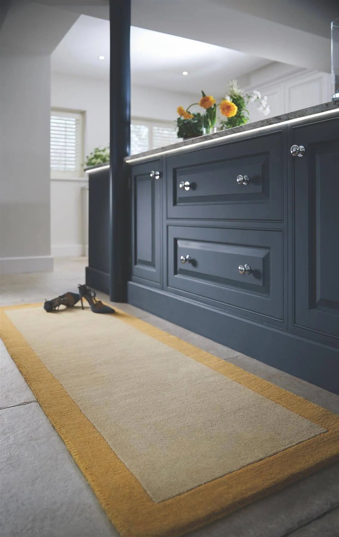 With a substantial pile weight of 2000 grams per square meter, the rug ensures a sumptuous underfoot sensation. Hand loom woven to perfection, its construction seamlessly blends traditional techniques with contemporary aesthetics. Elevate your living space with the Borders Ochre rug, where vibrancy meets practicality. Whether accentuating a neutral palette or adding a splash of color to a vibrant setting, this rug seamlessly merges style and comfort for a true visual and tactile delight.