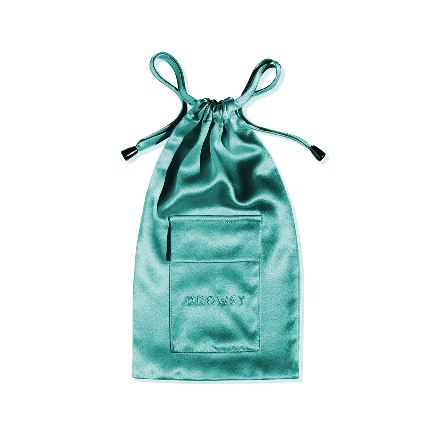 Keep your luxury Drowsy sleep mask protected at all times with this 100% pure mulberry silk carry pouch. Designed with a silk drawstring closure, silver coloured aglets and embroidered Drowsy logo.
