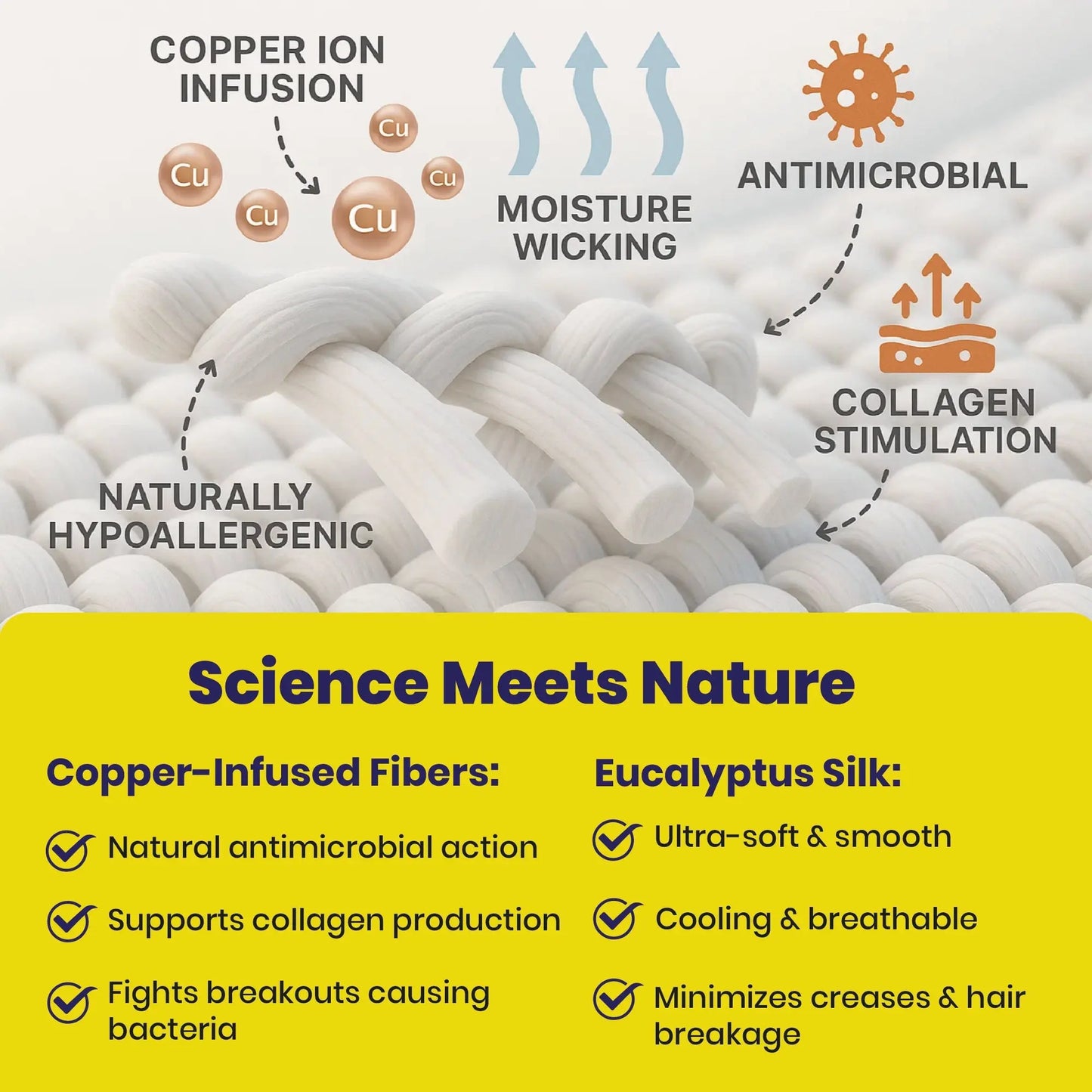 Enjoy a blissful night's sleep with Brightr® rejuvenating Copper infused pillowcase. Silky smooth and infused with copper ion oxides, it will help you maintain a youthful appearance while you sleep, protect you from bacteria and help you enjoy a refreshing night's sleep.