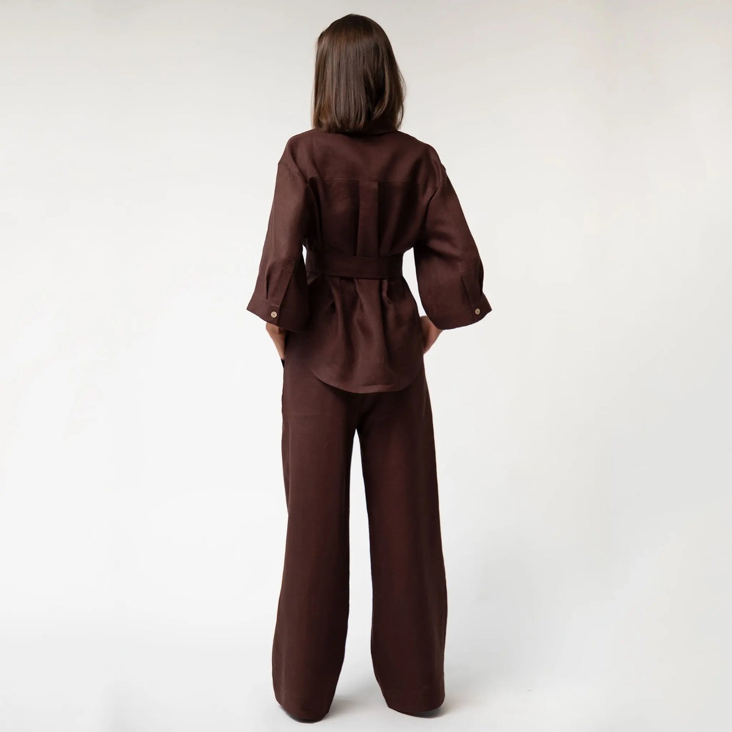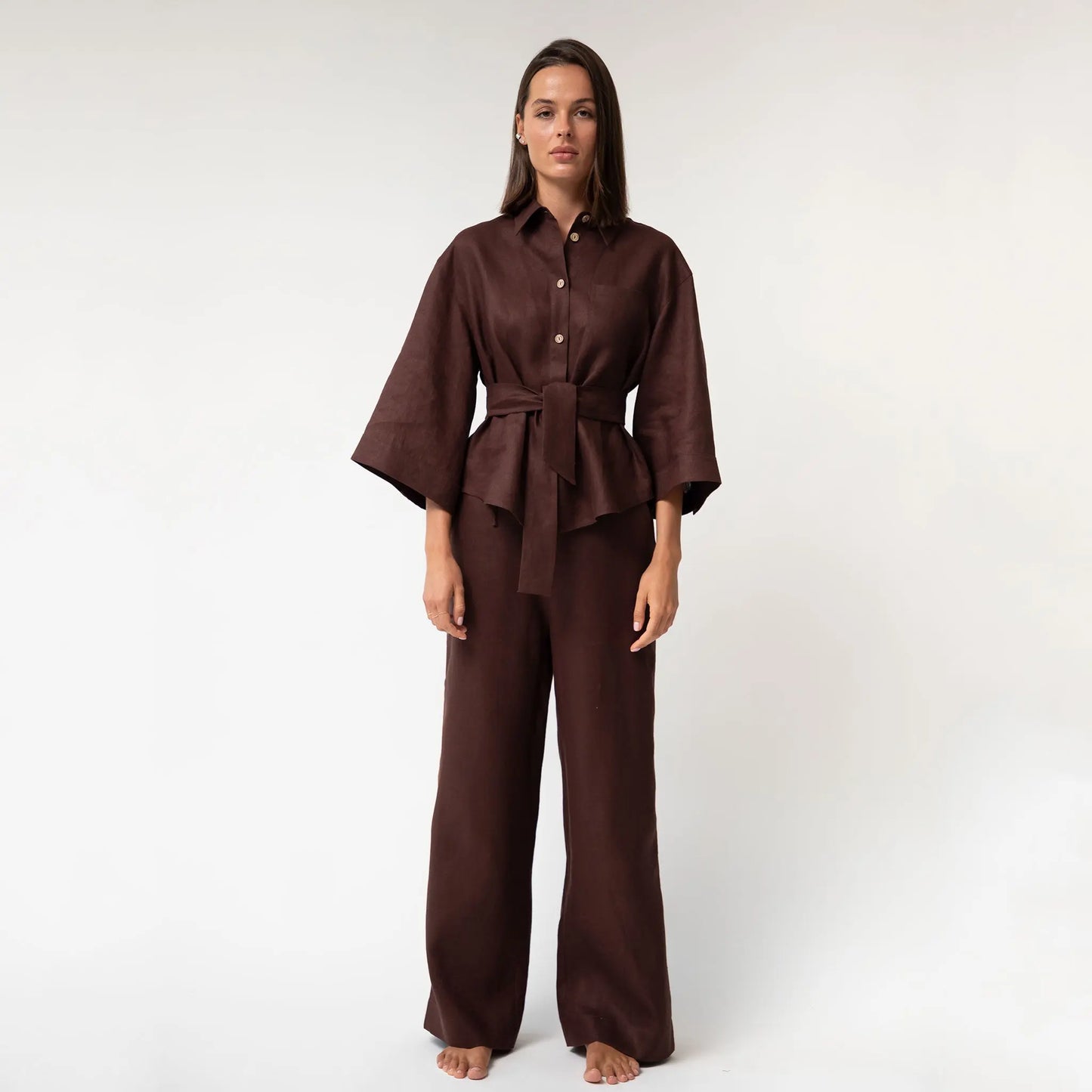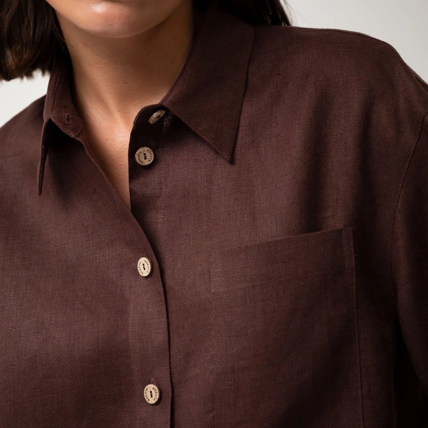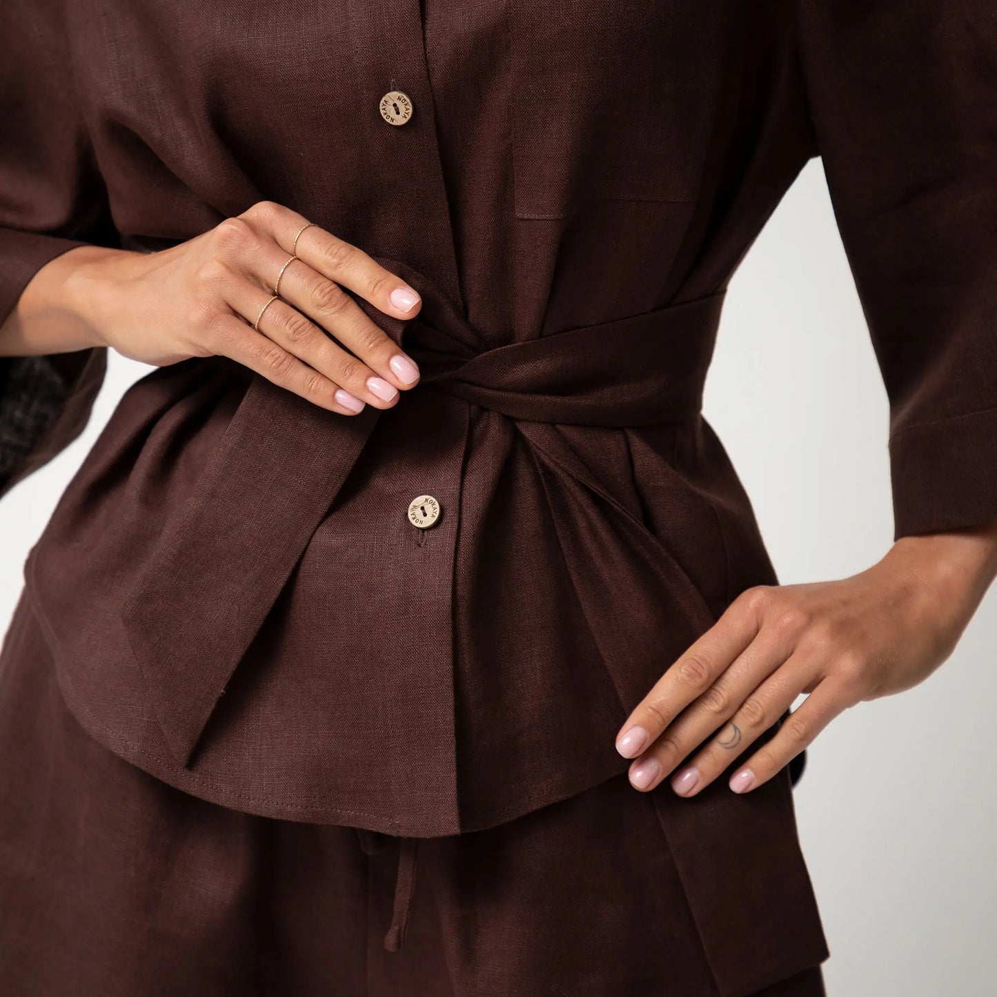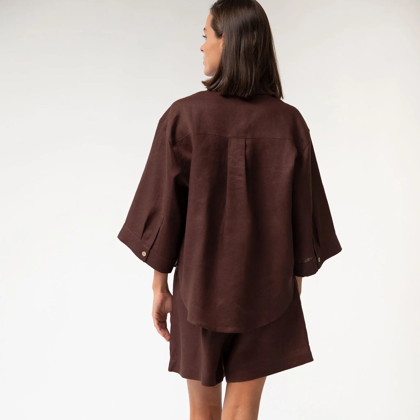 Style Tip: Pair with matching brown heavy linen shorts for a seamless look, or mix with lighter tones for a softer, natural combination.