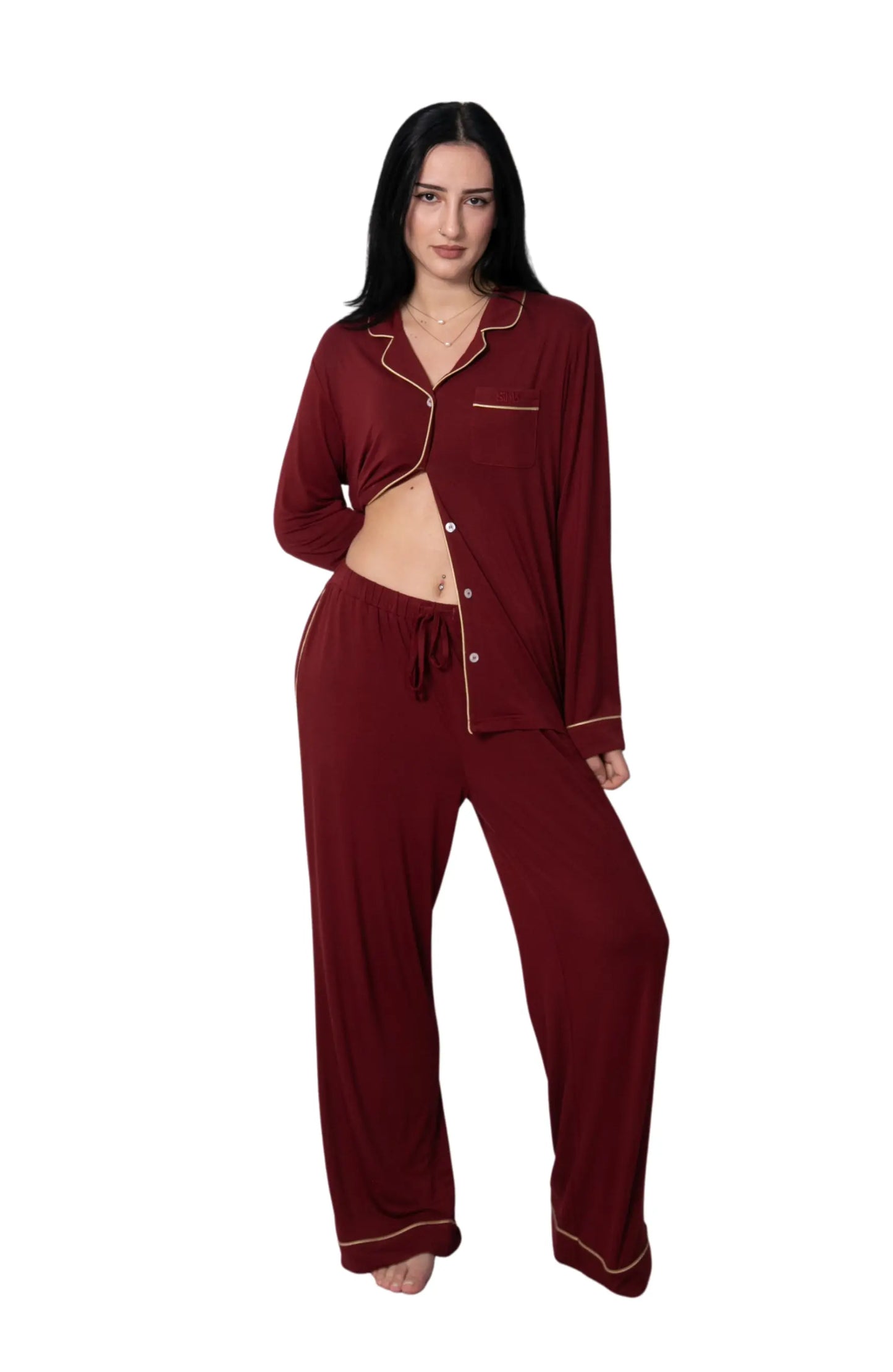Burgundy Bliss Women's Bamboo Pyjama Trouser Set