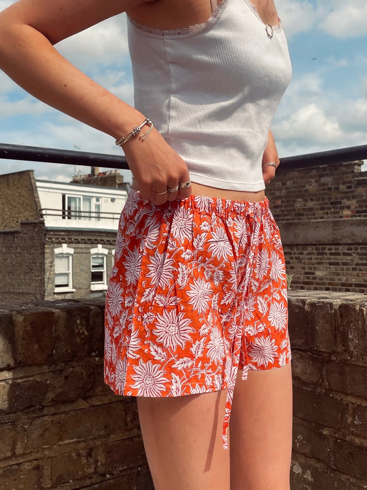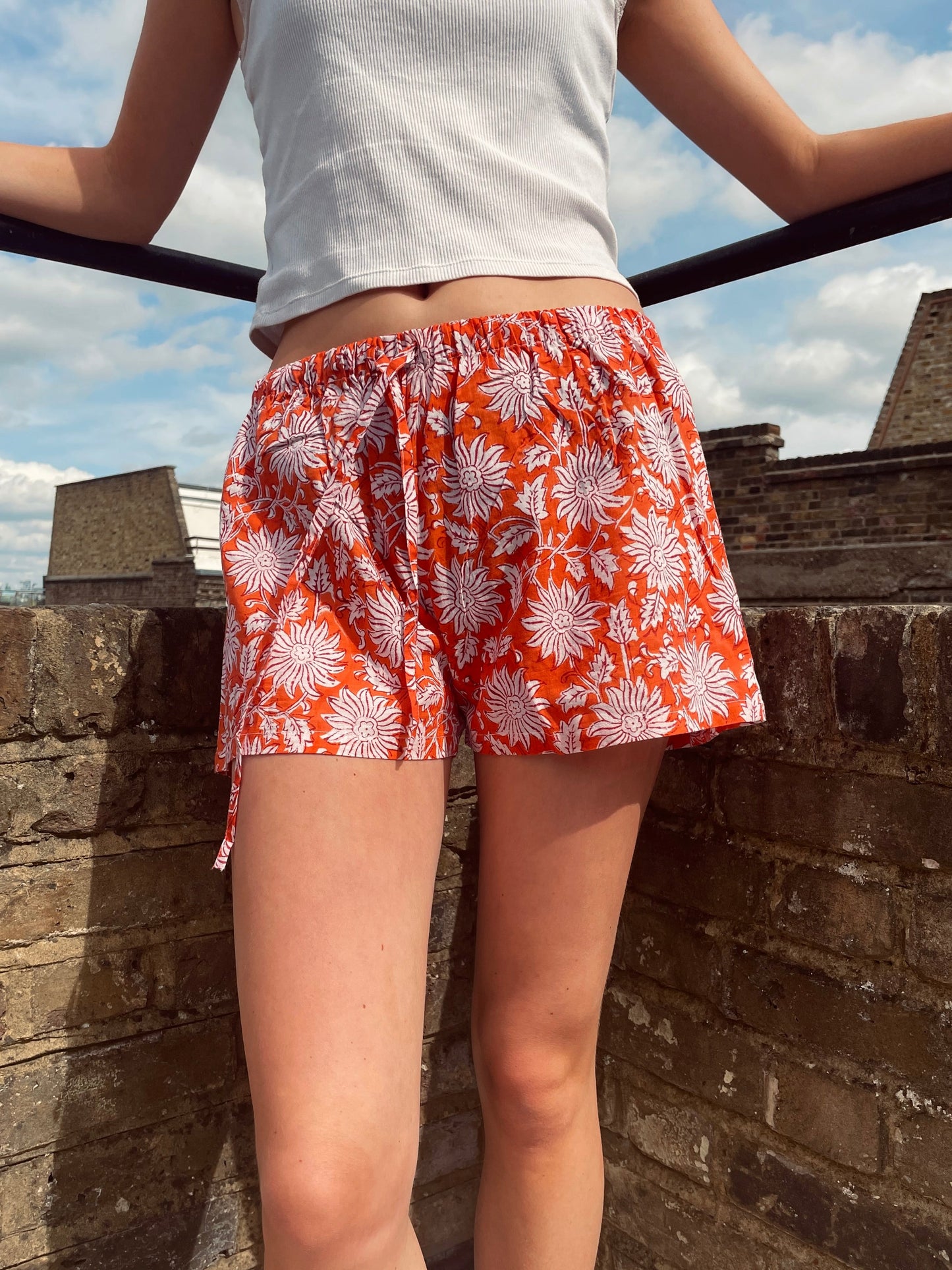 Block printed pyjama shorts handmade in Jaipur. Perfect for lazy days, beach fun and summer nights. The fabric is hand printed so please allow for small discrepancies in designs as each pair is unique.