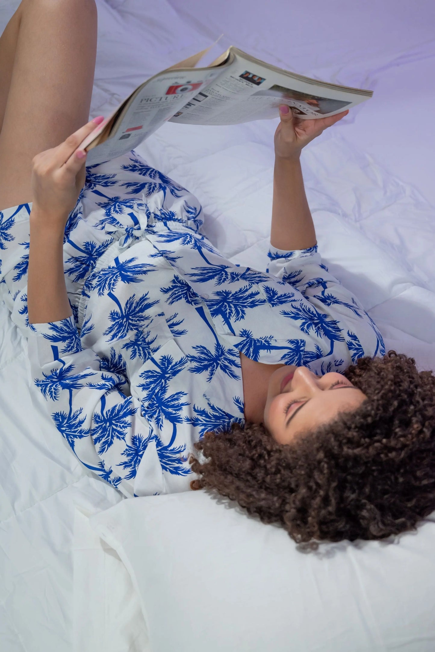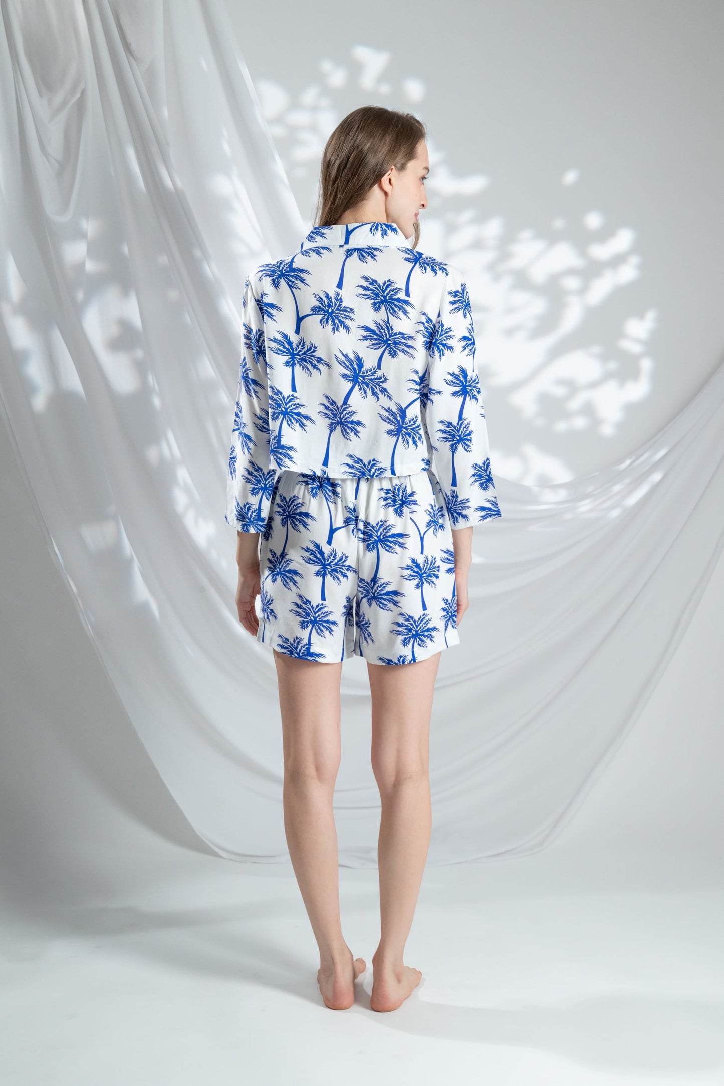 The PJ's are ideal for lounging around indoors and getting the best night's snooze. They work well for spring, summer and early autumn. The versatility of the print and material make them great to use as a beach co-ord as well. Pair these over your favourite bikini and we have a double purpose PJ's.