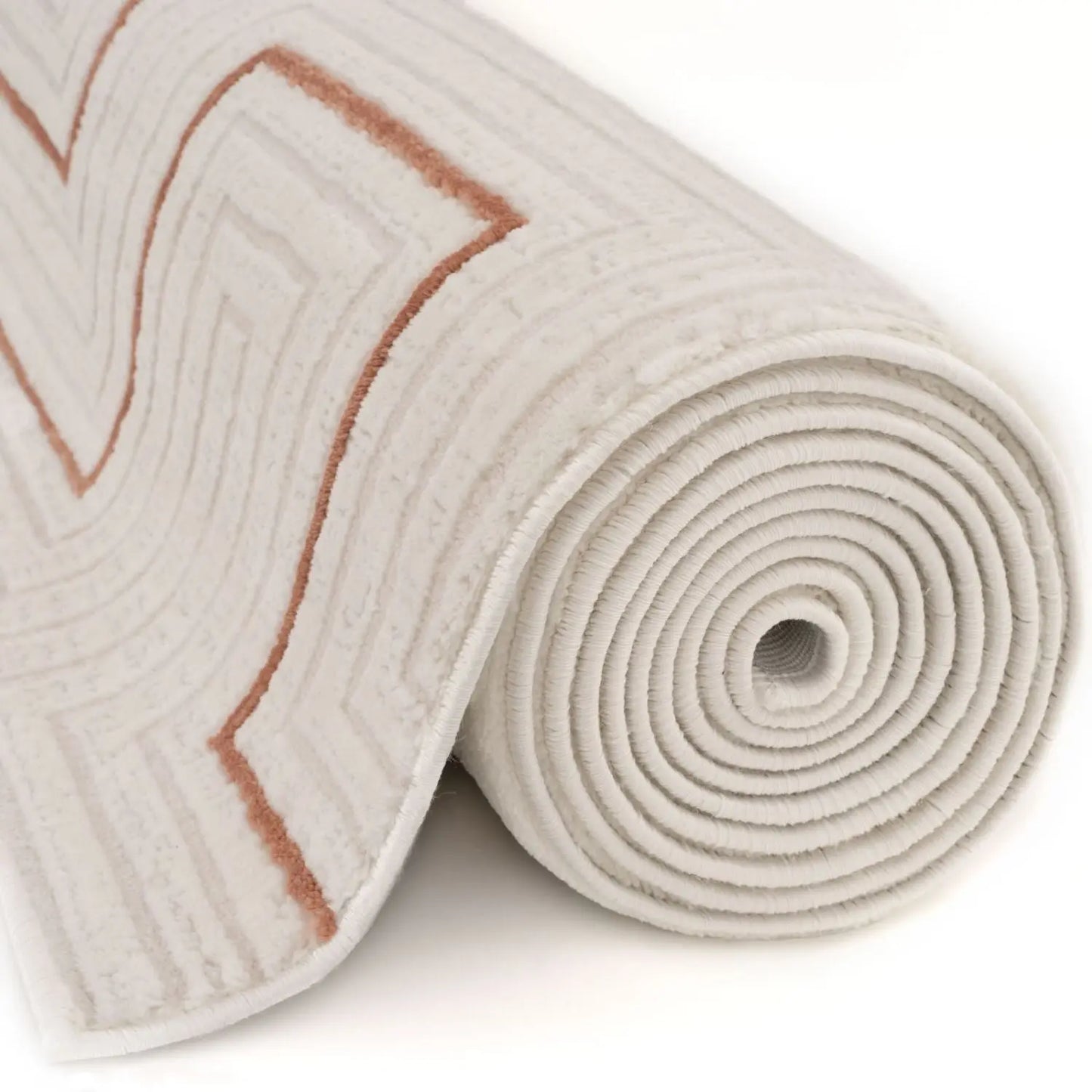 Add a touch of modern elegance to your space with this Cream-Red Geometric Area Rug – a perfect mix of clean design, lasting comfort, and practical features. Its subtle pattern and neutral tones make it easy to pair with a wide range of décor styles, from contemporary to classic.