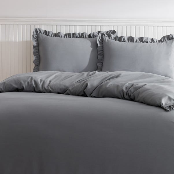Charcoal Briona Frilled Edge Duvet Cover & Pillowcase Set