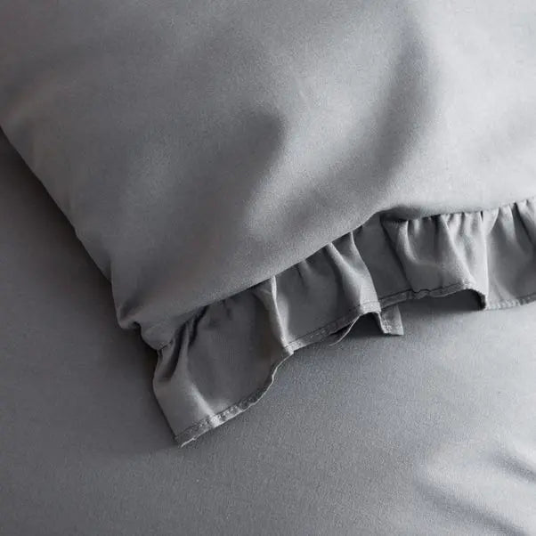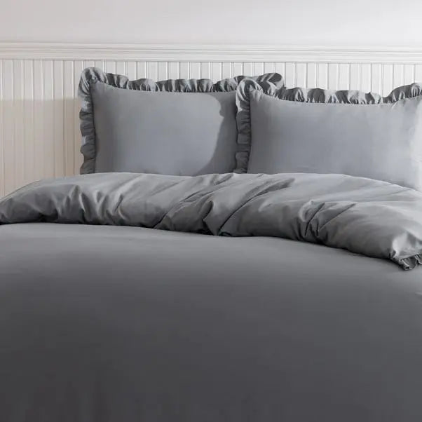 Charcoal Briona Frilled Duvet Cover & Pillowcase Set
