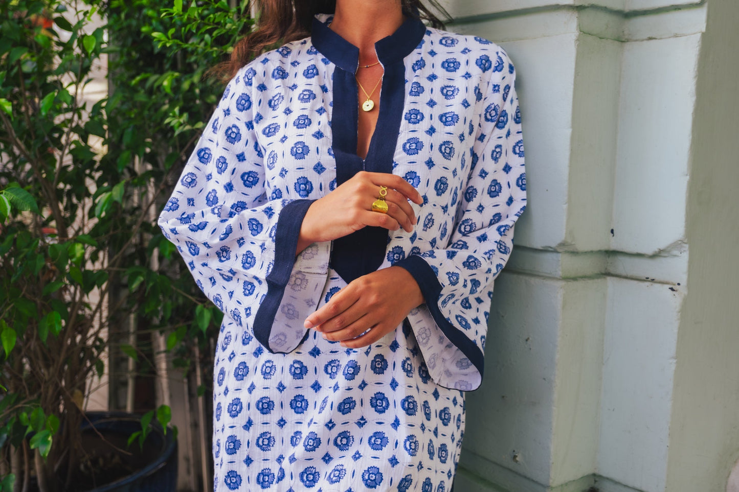 Meet Chaya—a dreamy blend of style, comfort, and practicality, perfect for days that call for a little extra relaxation and sunshine! Made from soft, breathable fabric in tranquil blue tones, this tunic has a relaxed, flowy fit that’s effortlessly chic. And yes, it has pockets! You may recognise this print from our Chaya pyjamas, your sign to treat yourself to both!