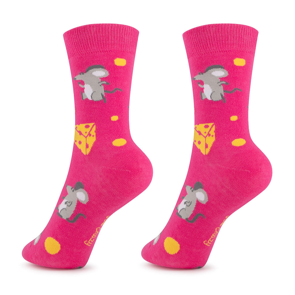 Who moved the cheese? Your little one did—with their feet! Our Cheesy Chompers socks feature cheeky mice and golden cheese wedges on a bold pink backdrop. These socks are big on color, comfort, and character.