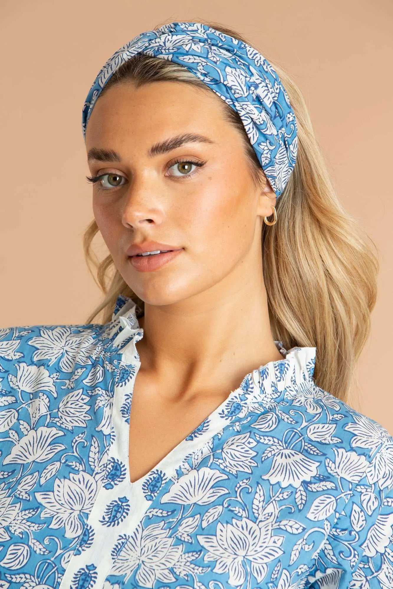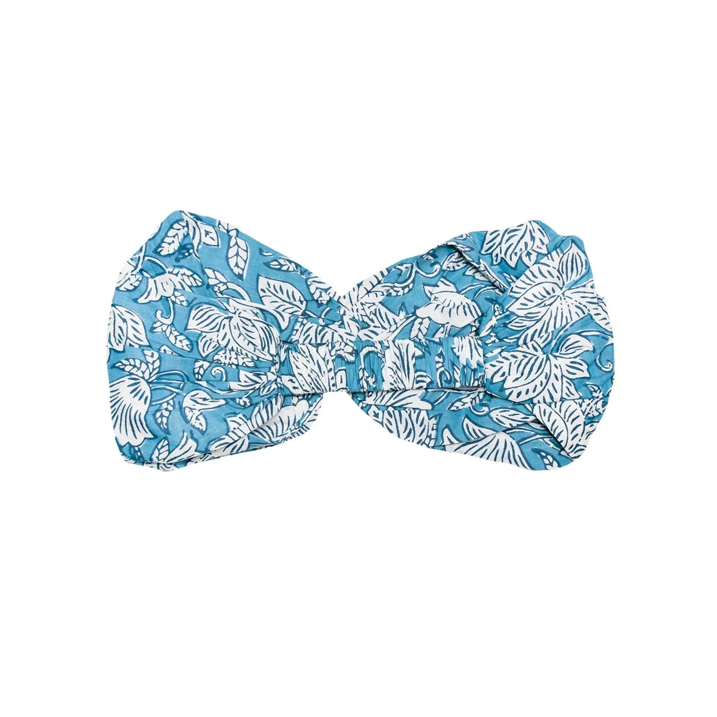 Our China Blue Paisley cotton hair scarf is inspired by blue-glazed pottery and porcelain from Persian cobalt ores. The blue cotton head band is elasticated to gently hold your hair back for your evening skincare routine, or as a pop of colour to show off during the day.