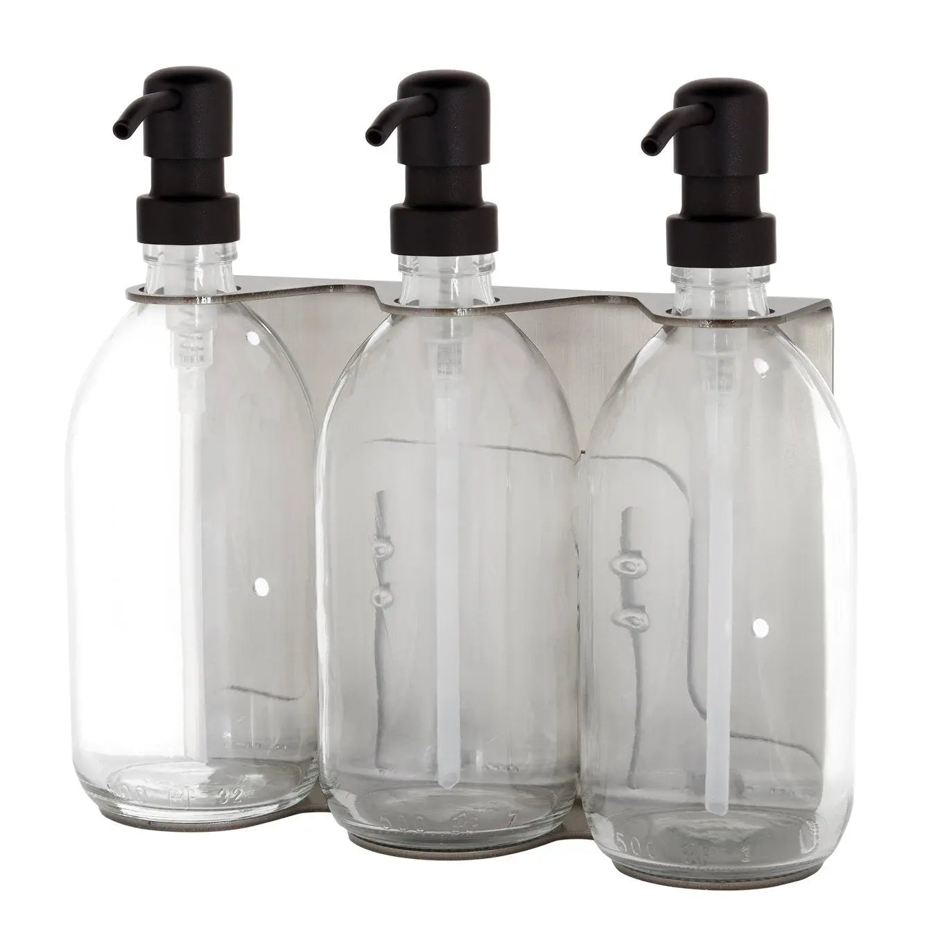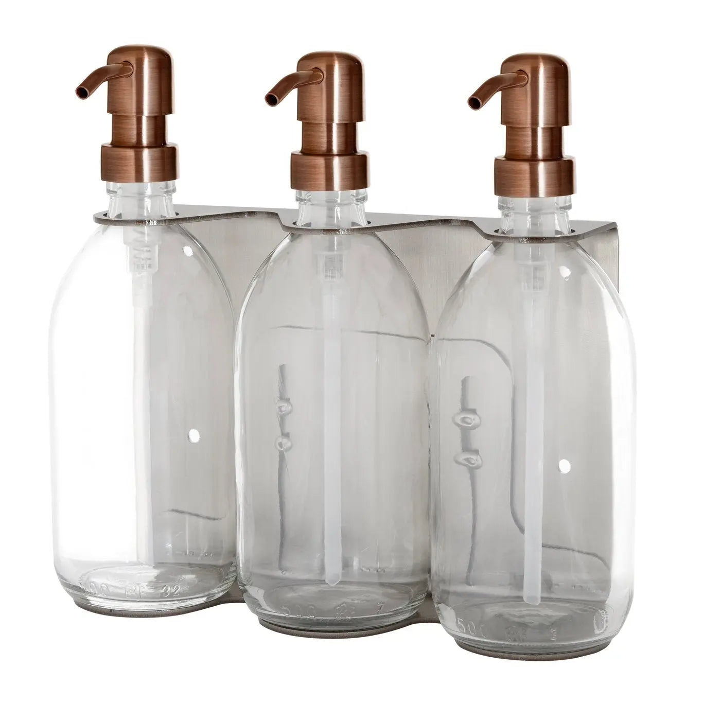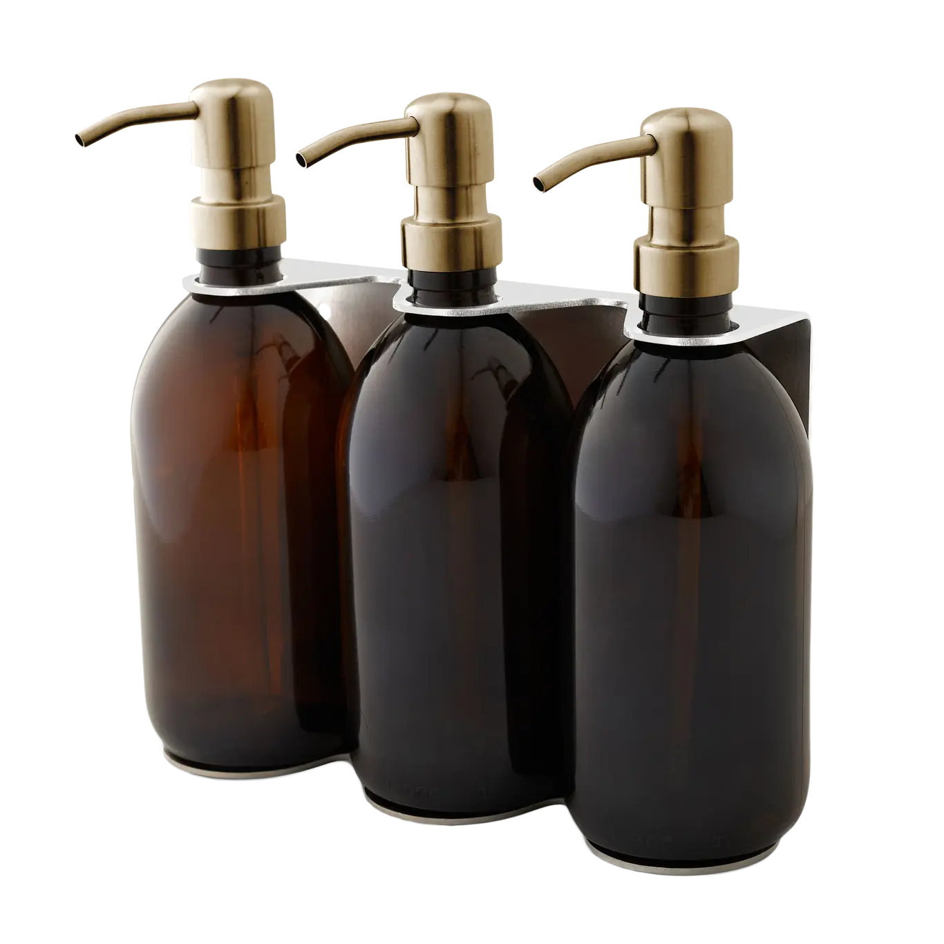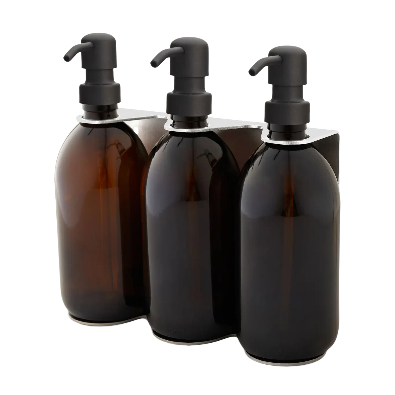 Introducing our classic chrome triple wall-mounted dispenser, designed to keep your soap within reach. This double wall-mounted holder features three refillable glass bottles and is perfect for optimising space while enhancing any bathroom or space’s clean, modern aesthetic.