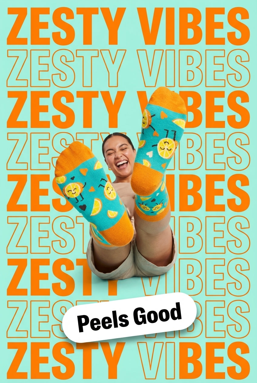 Feeling a little fruity? Slip into something zestier with our “Citrus Got Real” socks a tangy explosion of sunshine, silliness, and serious sock game. With grinning orange slices and dancing citrus buddies, these socks are basically a fruit salad for your feet.
