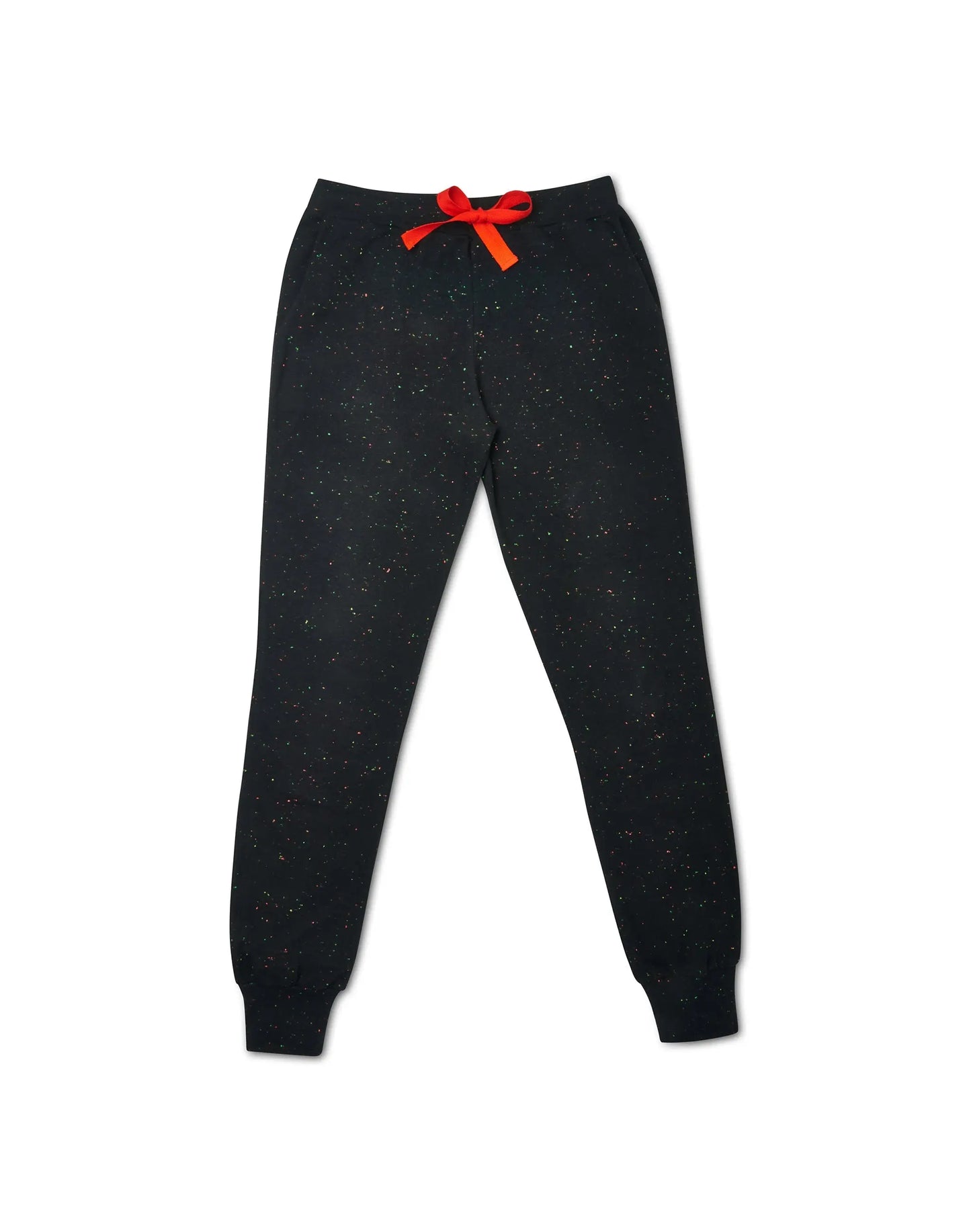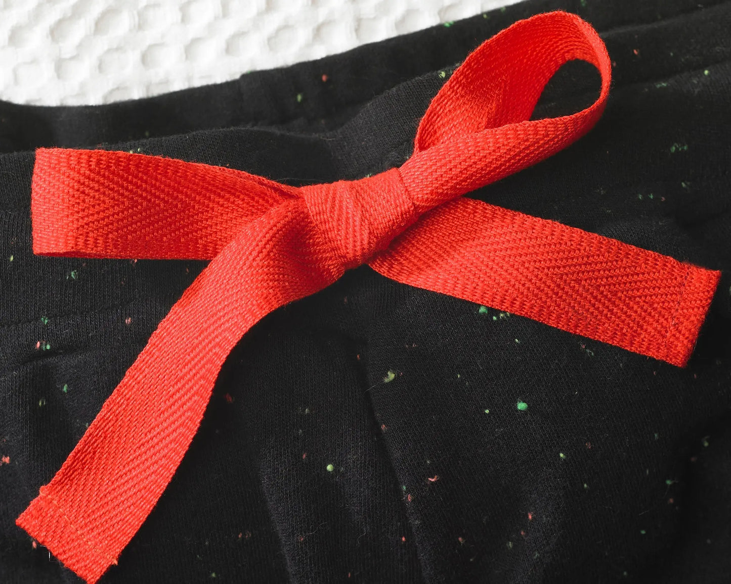 Guess what... our black pj trousers have POCKETS!! Something our pyjama bottoms are rather proud of and do like to do a bit of a humble brag. Another thing, there's nothing worse than a low rise pair of pyjama trousers so these are high rise and have a lovely red cotton drawstring for the waist. (Which FYI matches the red buttons on the Long Sleeve Top perfectly). Our speckled fabric trousers are best for relaxing around the house in on a snoozy Sunday and some times can become a little more akin to loungewear - win win.