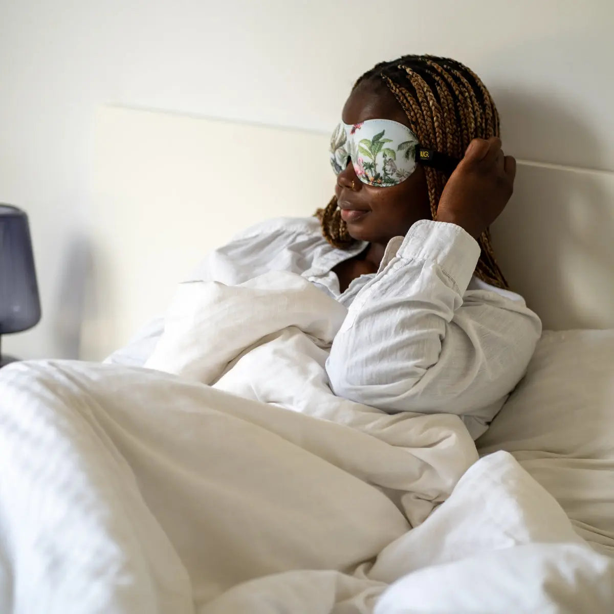 Its contoured shape keeps pressure off your lashes and eyes, while the breathable, soft fabric and adjustable strap ensure a comfortable, secure fit. Whether you’re winding down at home or travelling far and wide, this tropical mask is your passport to peaceful rest.