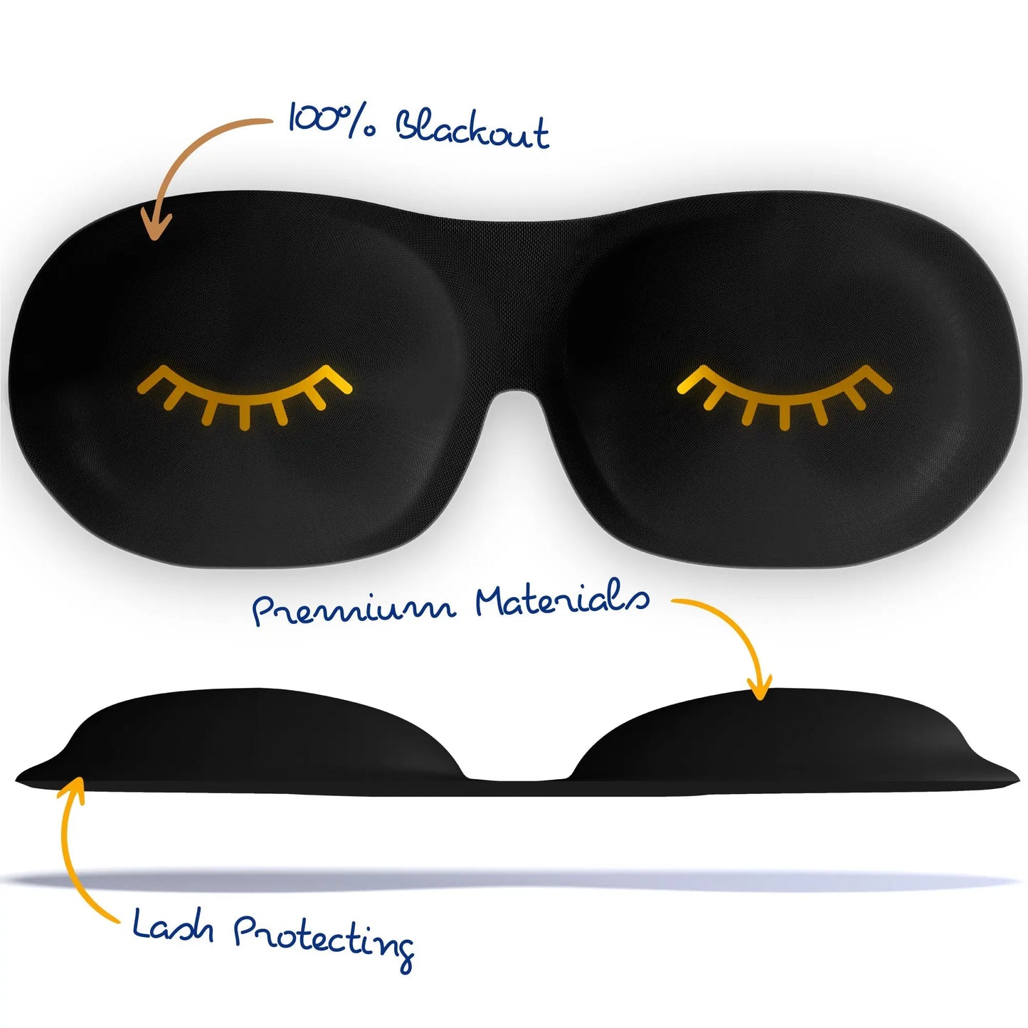 Contoured 3D Blackout Sleep Mask - Wink Print, Black