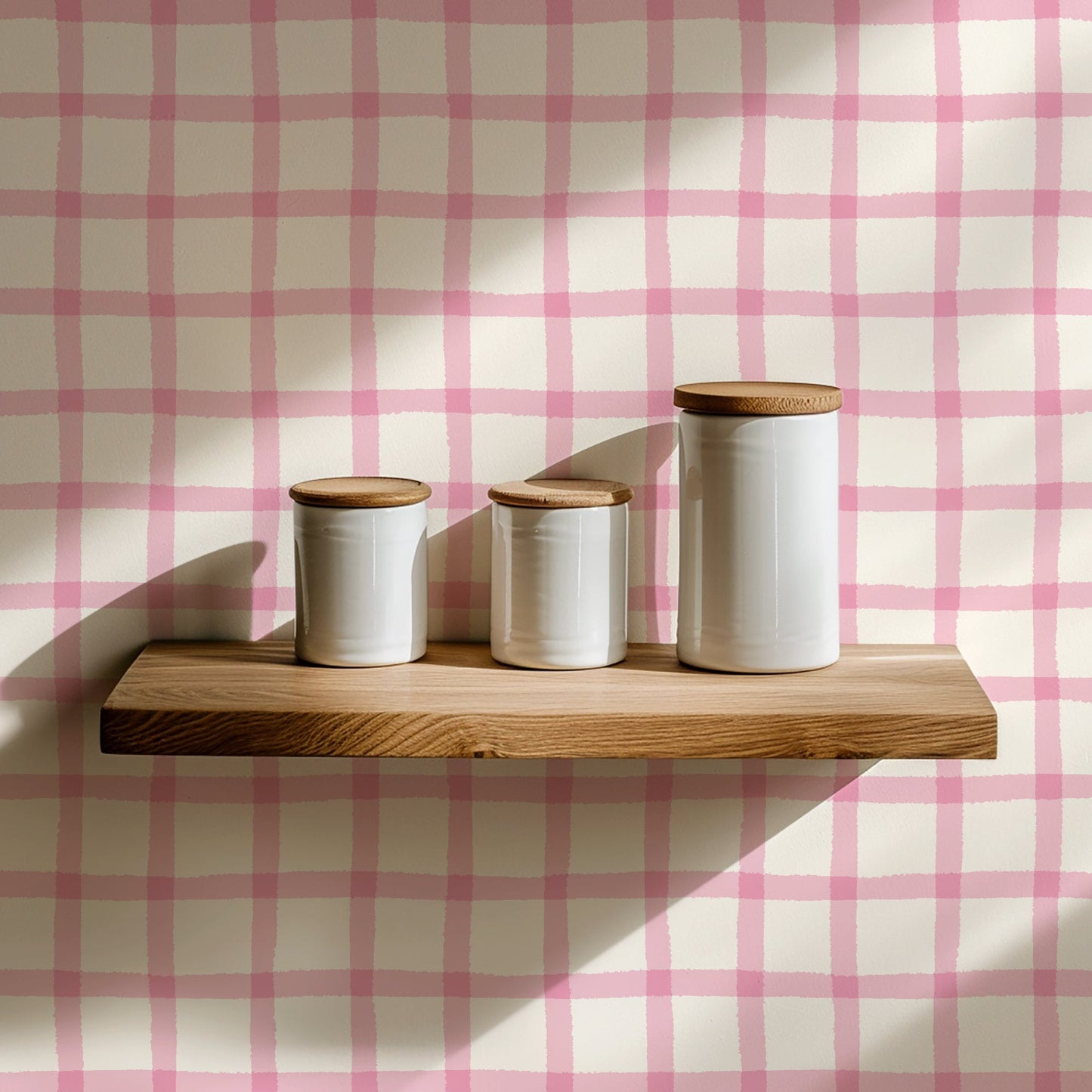 COTTAGE GINGHAM SOFT PINK WALLPAPER