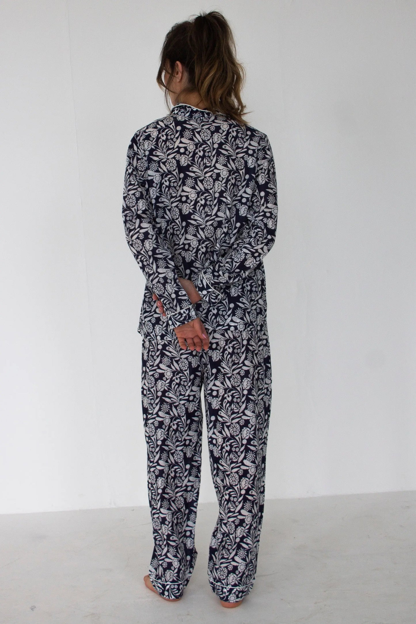 Made from 100% super-soft natural cotton, our pyjama sets ensure refreshing, rejuvenating sleep all year round — warm and cosy in winter, yet cool and airy in summer. Thoughtfully crafted in small batches by our team in India, each set is ethically produced, sustainably made and created by artisans paid fair wages and working sociable hours.