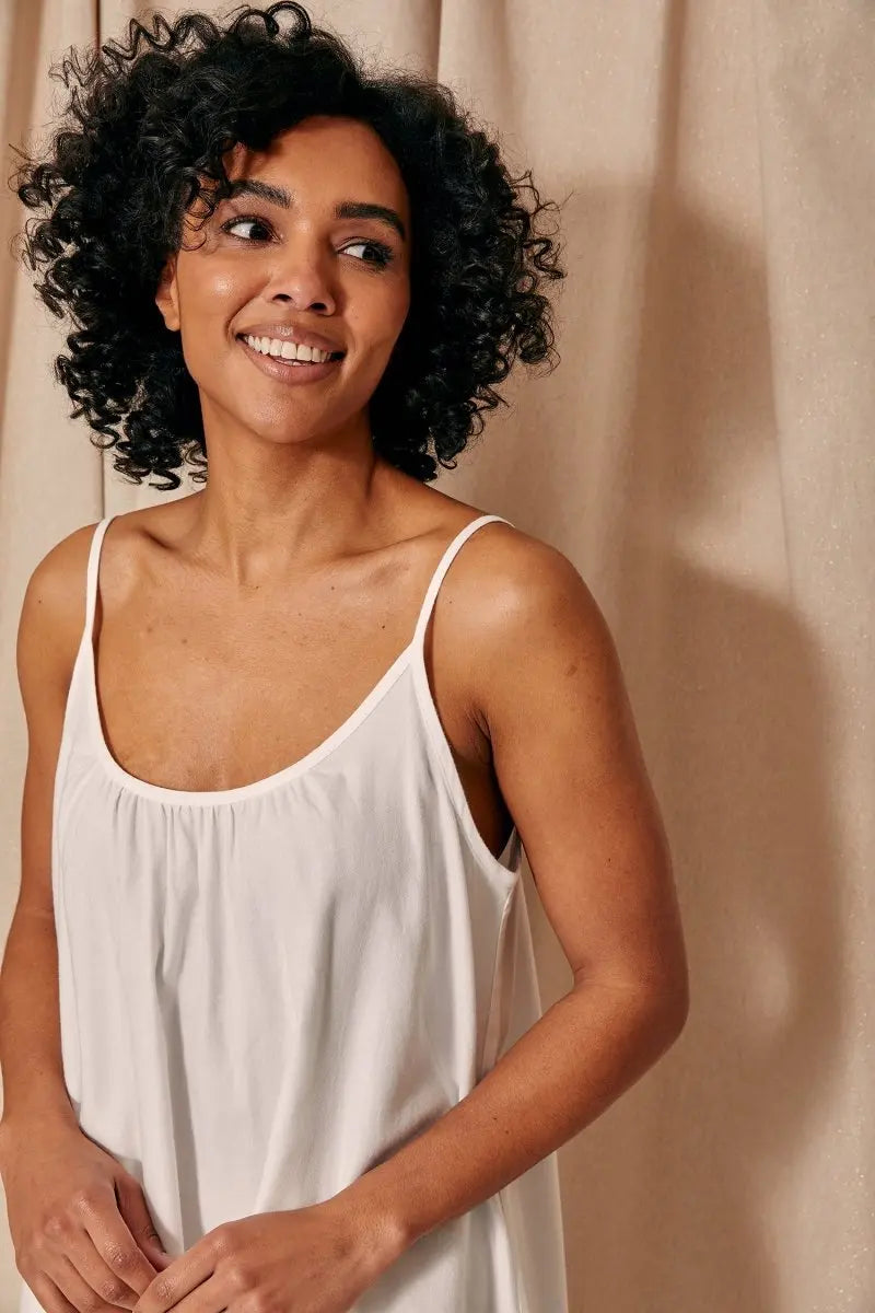 The Cotton Modal Swing Chemise is designed for those who love easy elegance. Its loose, flowy silhouette drapes beautifully, making it perfect for relaxed nights and slow, gentle mornings. Adjustable straps, a soft round neckline, and a scooped back with light elastication ensure a comfortable, flexible fit that moves with you.