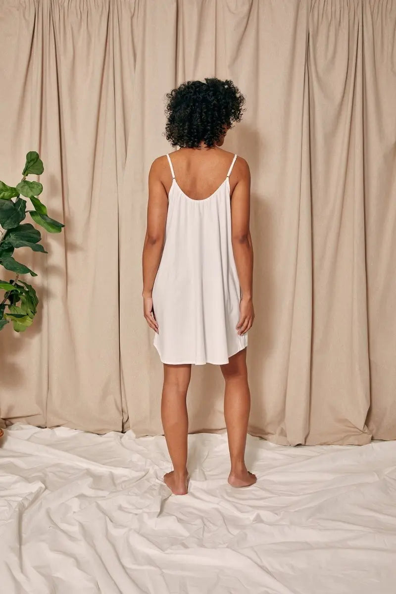 Crafted from a premium BCI Cotton Modal blend, this chemise brings together sustainably sourced cotton and silky-soft modal for a fabric that’s lighter, smoother, and more breathable than regular cotton. With reduced water usage and fewer chemicals in production, it’s a better choice for you and the planet—offering comfort you can feel good about.