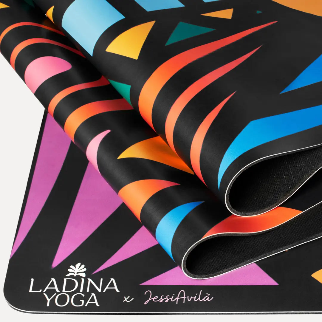Your yoga practice…on art! Designed by Jessi Avila, a promising artist from Madagascar, this mat reflects his journey of overcoming fear and embracing positivity. Inspired by life’s imperfections, it features a joyful splash of colours and imperfect symmetrical lines, bringing energy and artistry to every practice.