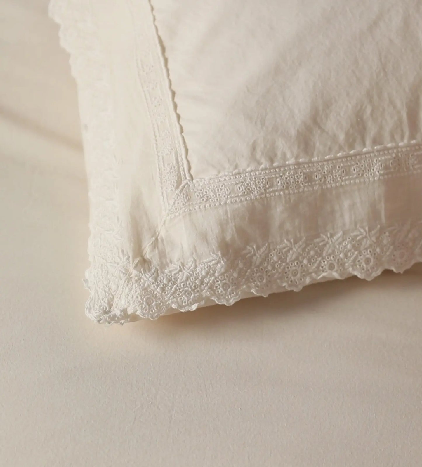 - Delicate Embroidery: Beautiful vintage-inspired stitching on the pillowcase and duvet edges.