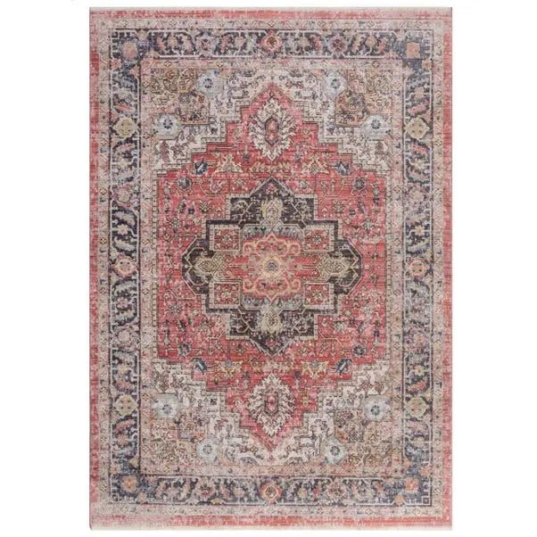 The Dahria Traditional Rug blends timeless charm with contemporary style. Featuring an on-trend distressed traditional pattern and elegant fringed edging, this low-pile rug delivers a high-end vintage look without the high-maintenance care.