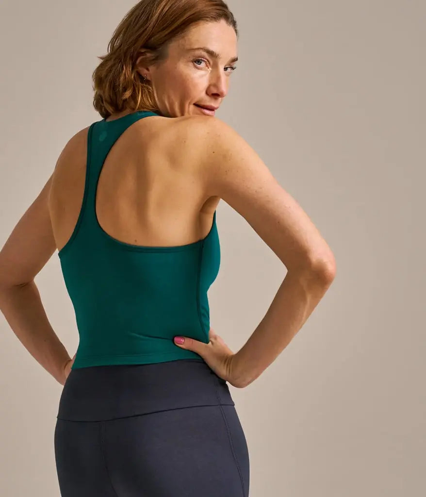 A soft yet supportive crop top crafted especially for your yoga flow. The Unity top features a gentle V neckline and built-in secret support, so you can skip the bra and still feel secure. With a racer back that flatters your shoulders, it moves with you while keeping you comfortably held.