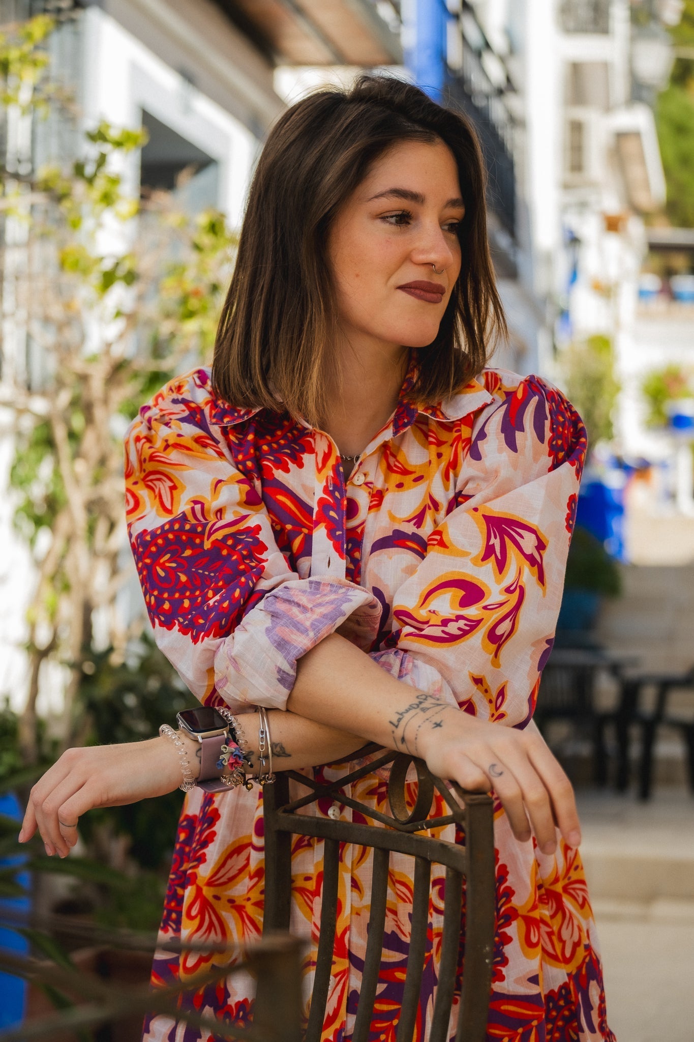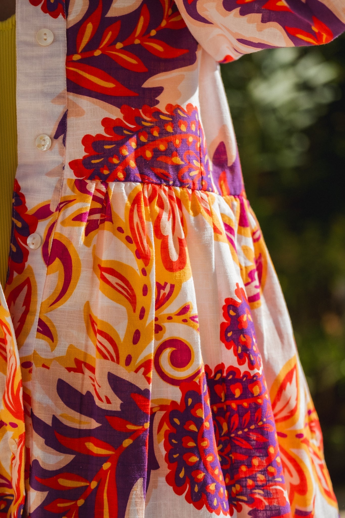Introducing our Paisley Print Tier Dress, crafted from rich organic cotton with a textured cross-hatch feel. This knee-length wonder is perfect for beach days or casual brunches. With its relaxed fit, playful tiered design, and convenient pockets, it combines style and comfort effortlessly. Whether you're strolling by the shore or enjoying a lazy café outing, this dress promises laid-back elegance for any occasion.