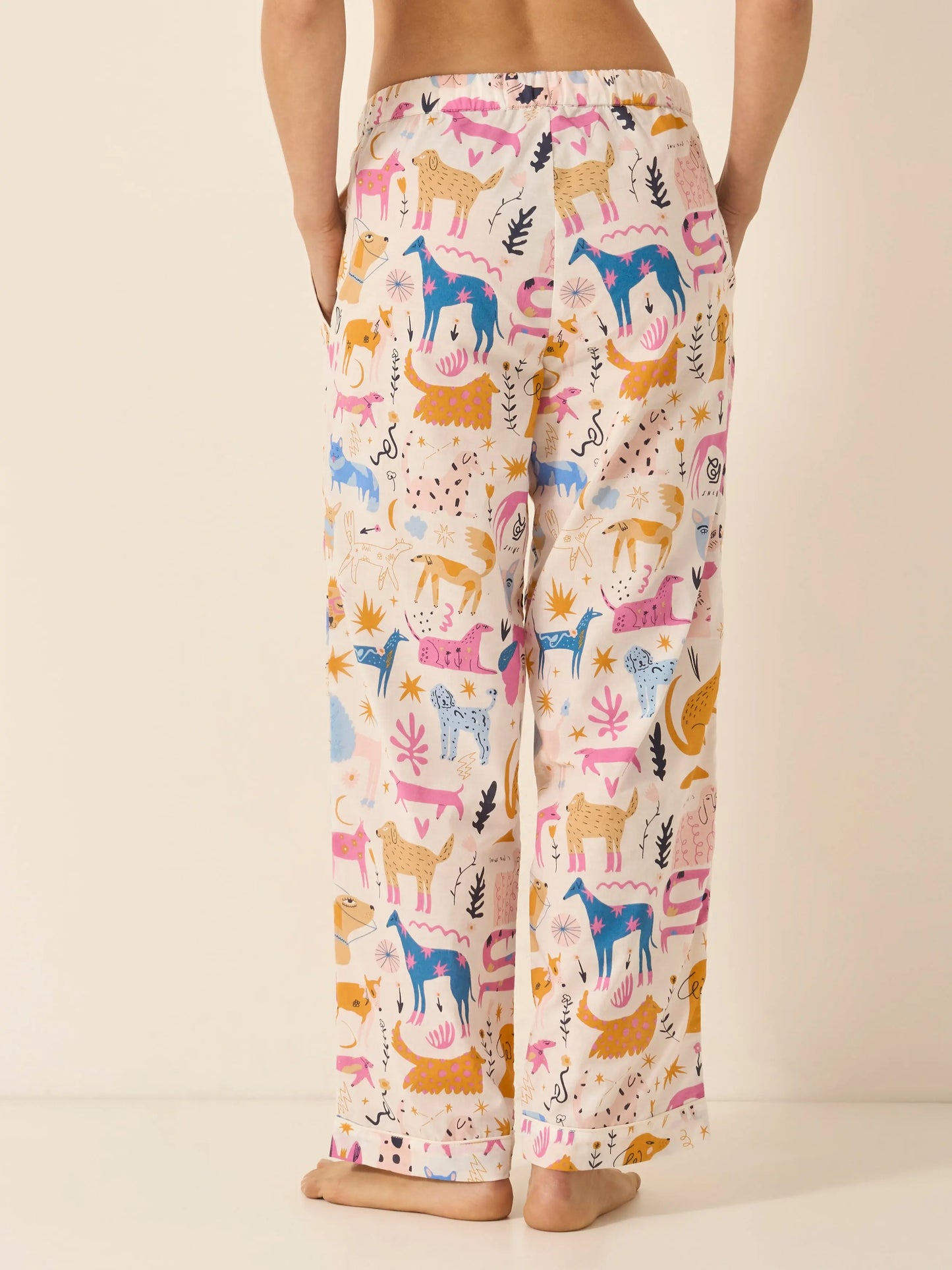 Introducing the Dog Print Organic Cotton Pyjama Trouser, designed to bring a lively, vibrant touch to your loungewear. Made from 100% GOTS-certified organic cotton, these trousers offer a relaxed fit and a charming all-over dog print. Perfectly blending classic comfort with contemporary style, they feature piped trims for a polished finish.