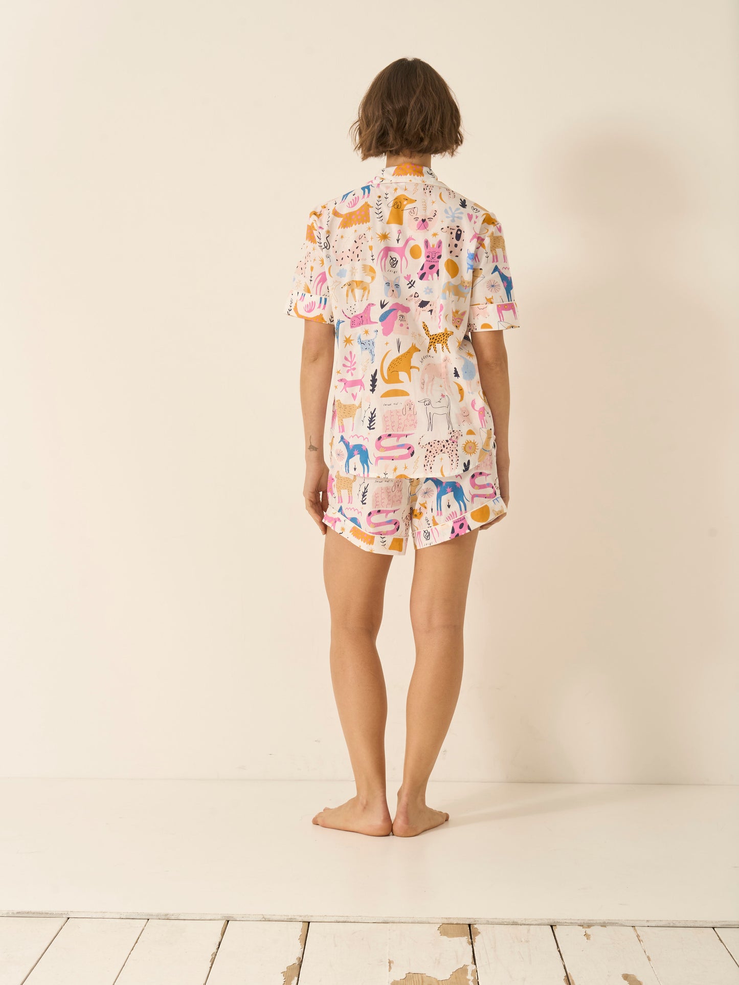 Dog Print Women's Short Sleeve Organic Cotton Pyjama Short Set