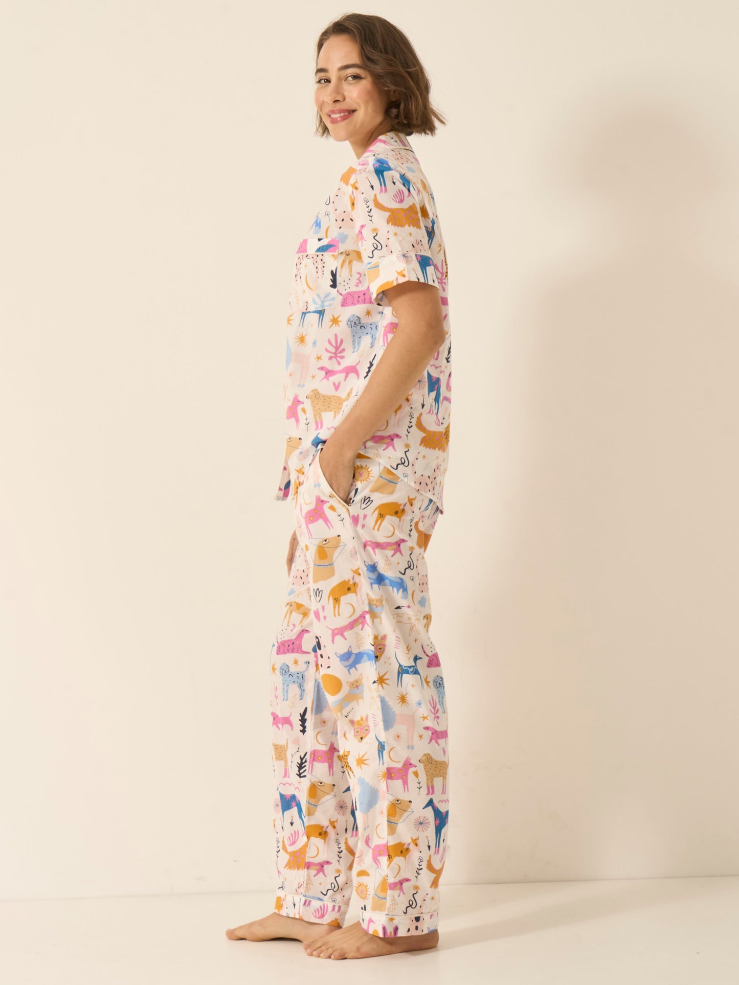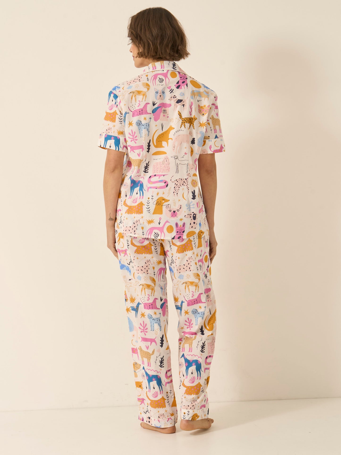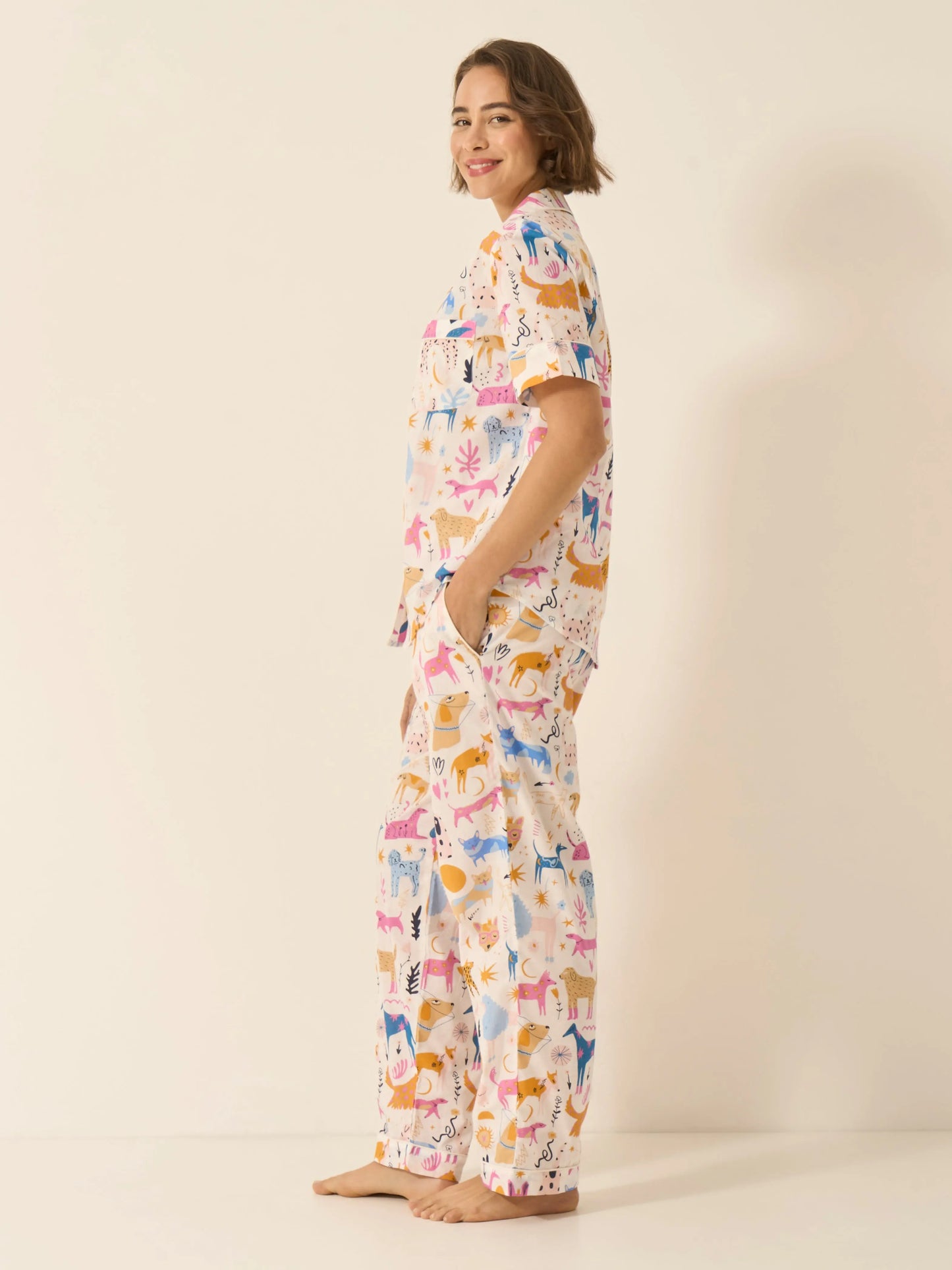 Dog Print Women's Short Sleeve Organic Cotton Pyjama Trouser Set
