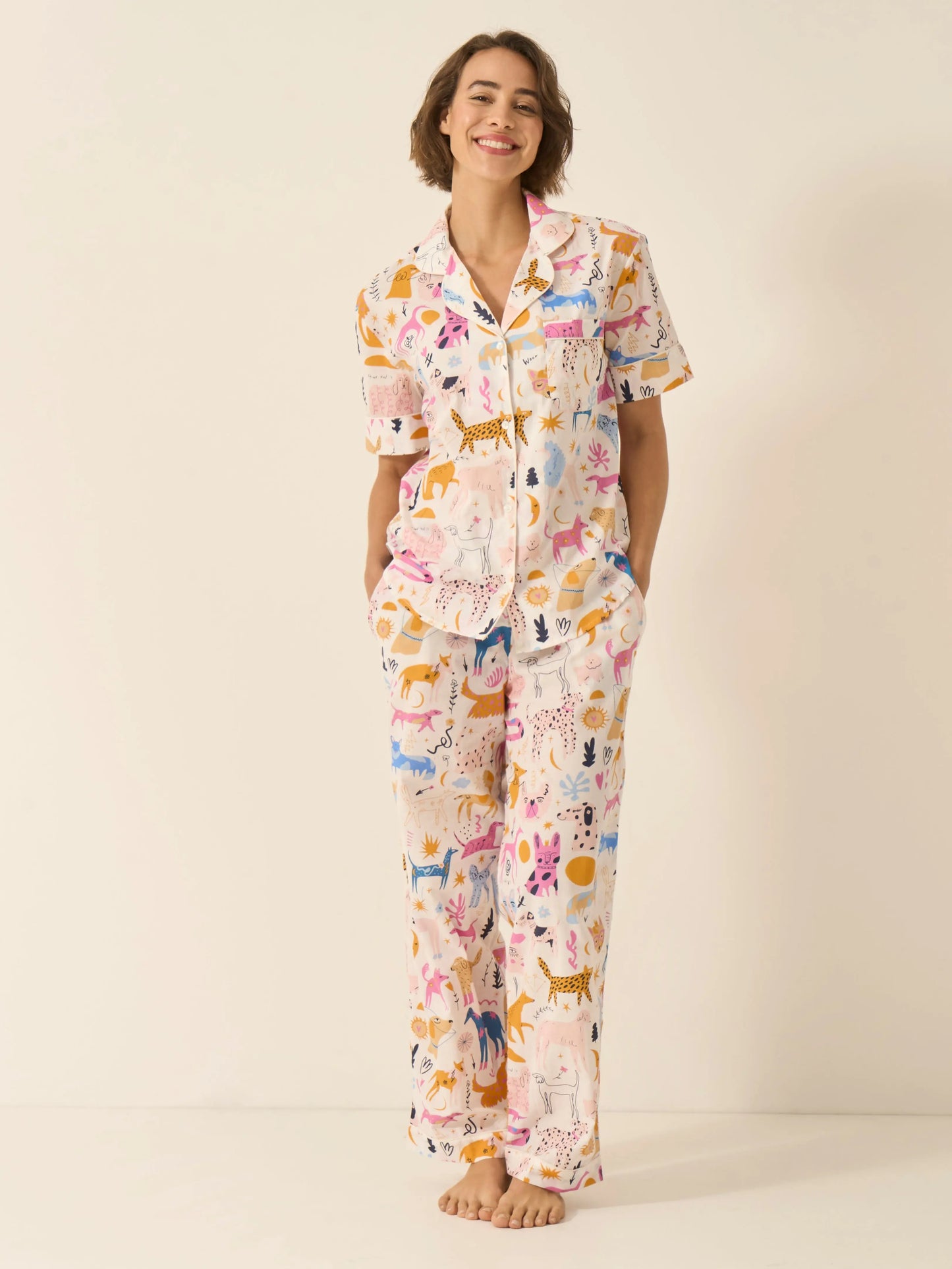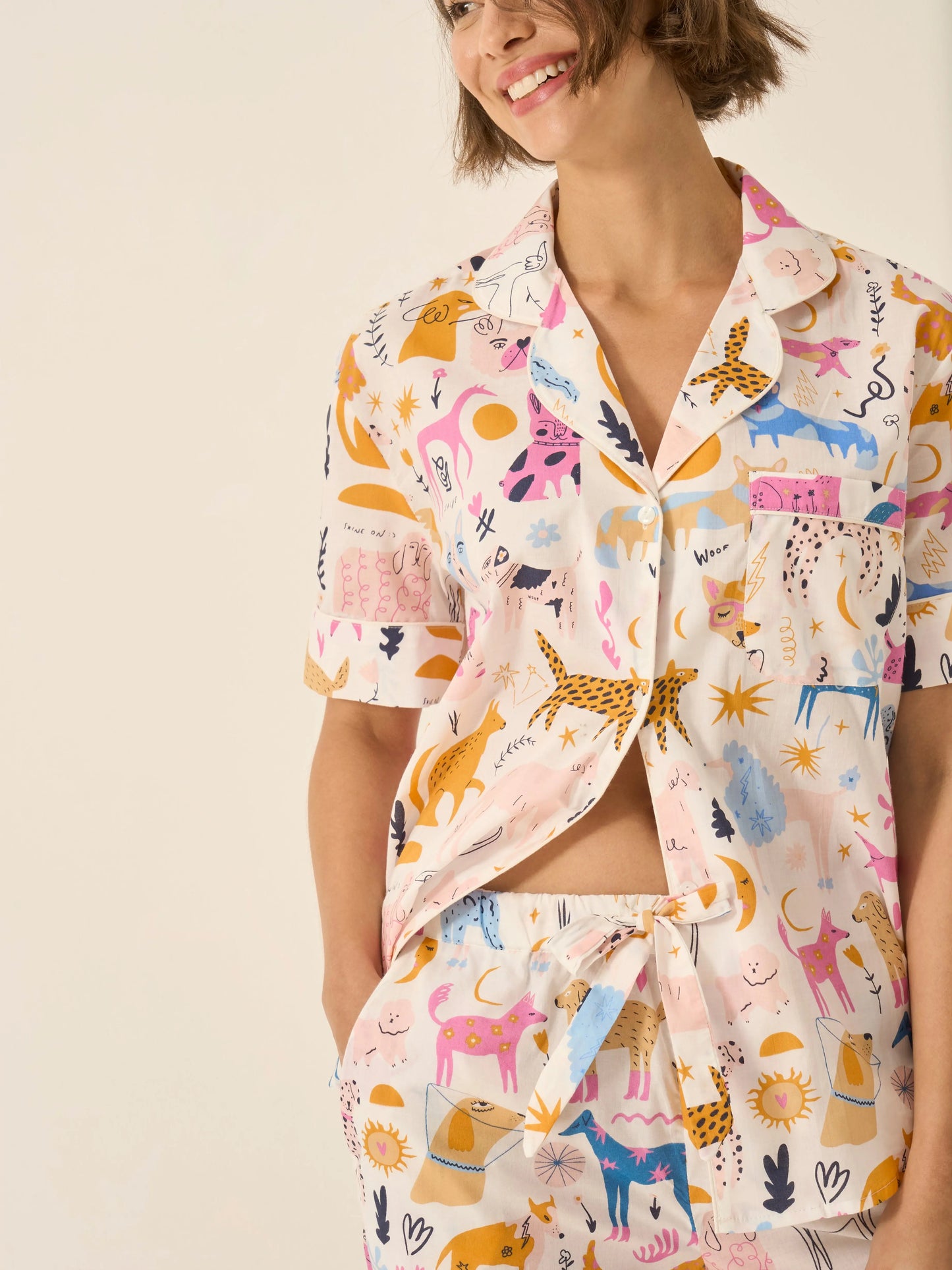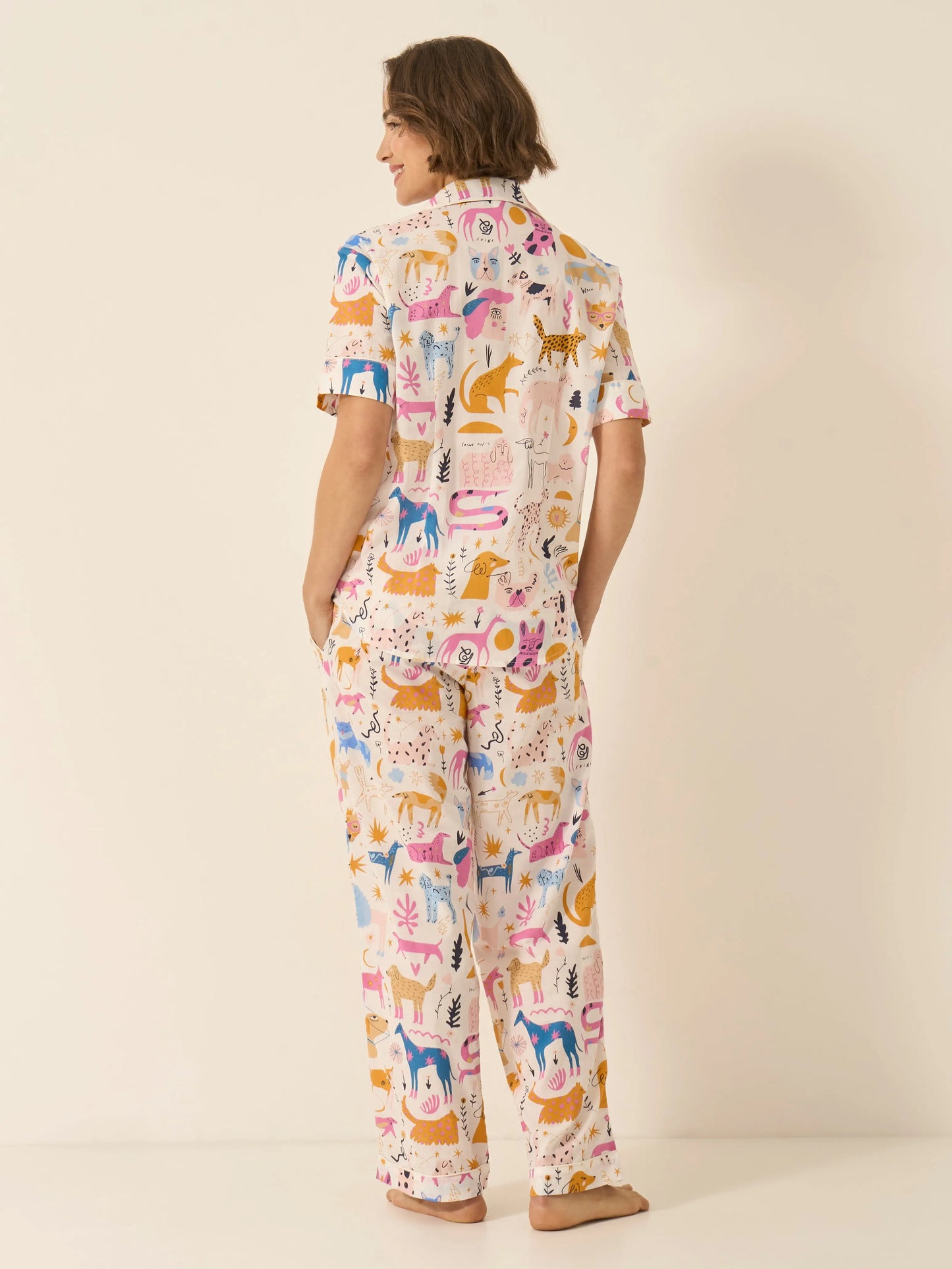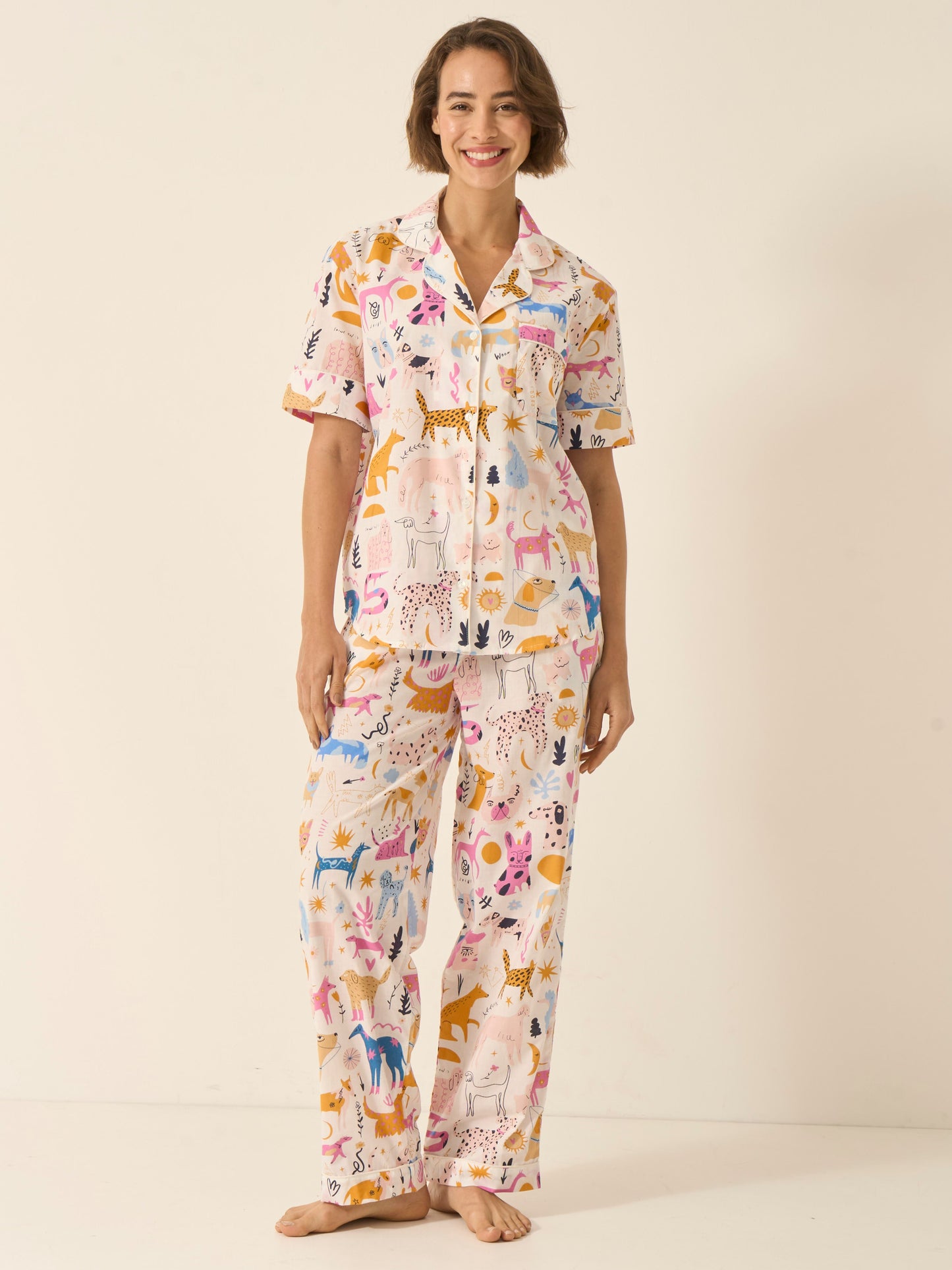 Dog Print Women's Short Sleeve Organic Cotton Pyjama Trouser Set