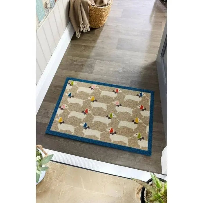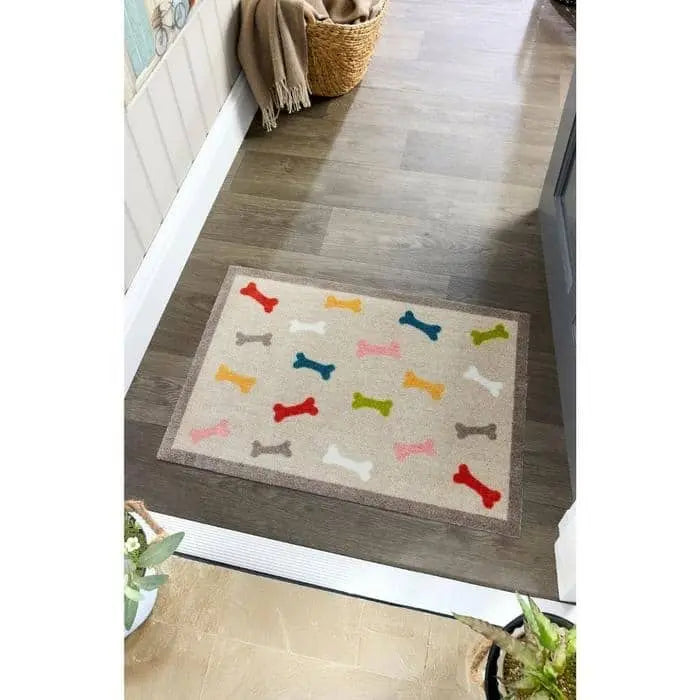 Available in a charming "Home Dogs" design, this mat is ideal for entranceways or placing under furniture to protect your floors while enhancing your décor. Combine practicality and style with this washable mat, perfect for adding functionality and character to your home.