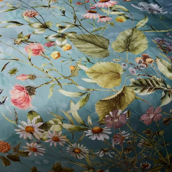 Surround yourself with the calming beauty of nature with the Dorma Meadow Breeze Duvet Cover and Pillowcase Set. Featuring a digitally printed floral design that cascades across luxuriously soft 100% cotton sateen, this set transforms your bedroom into a tranquil retreat. The deep, rich green reverse adds a grounding balance, perfect for a restful sleep space.
