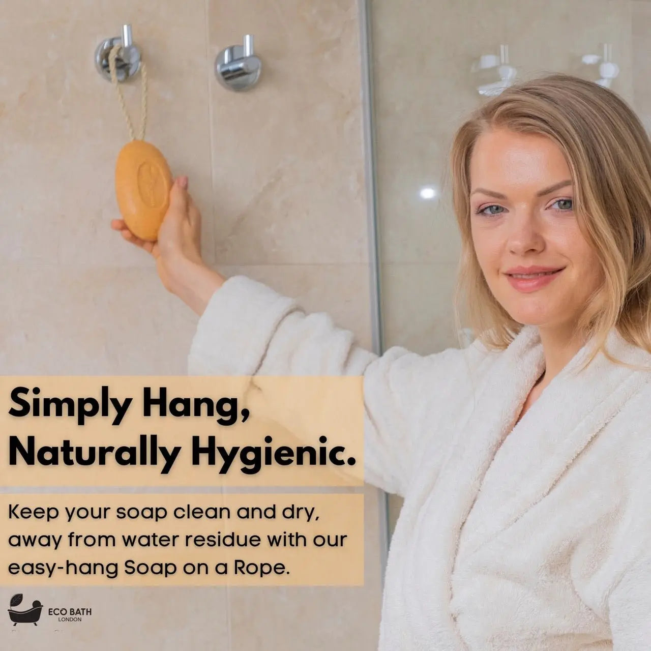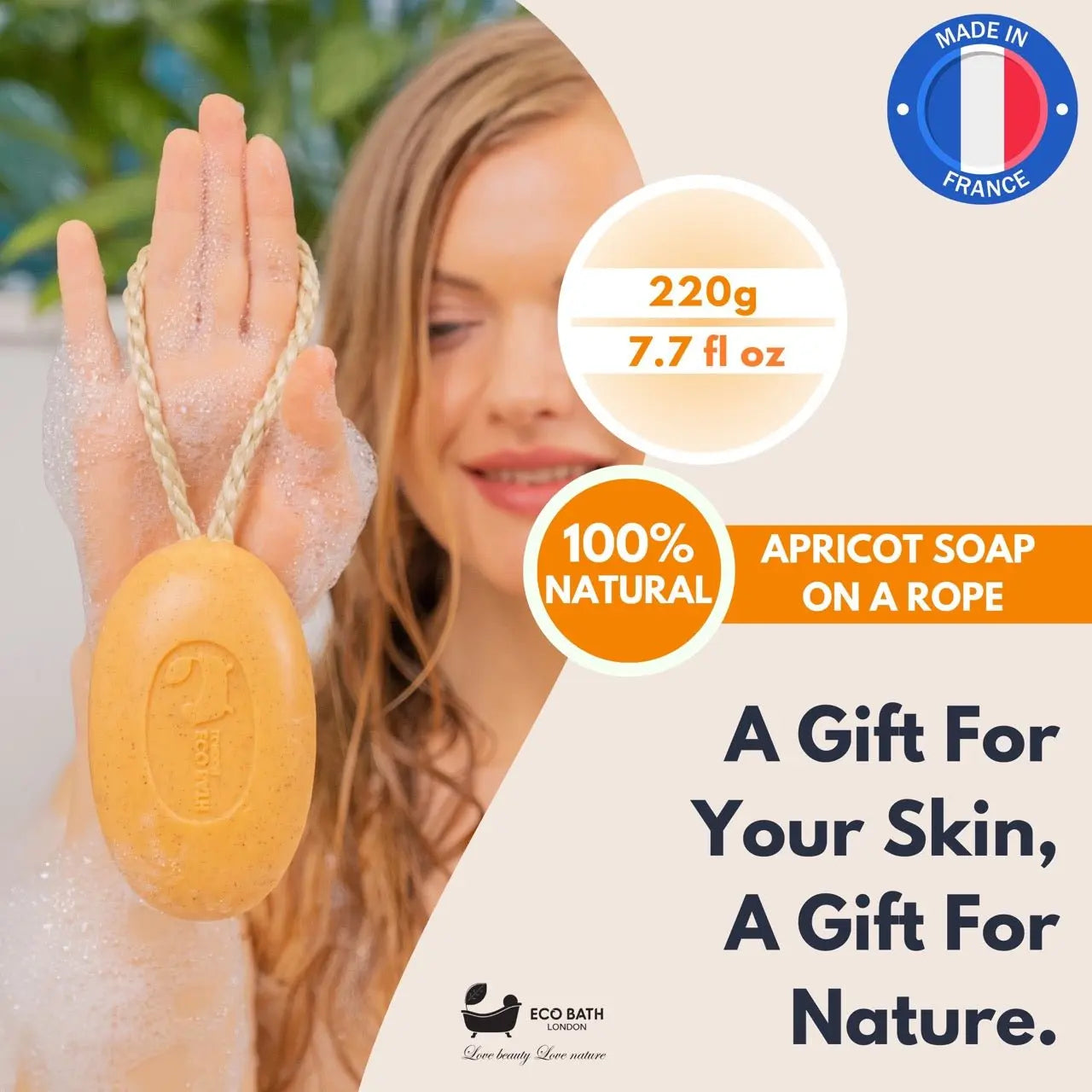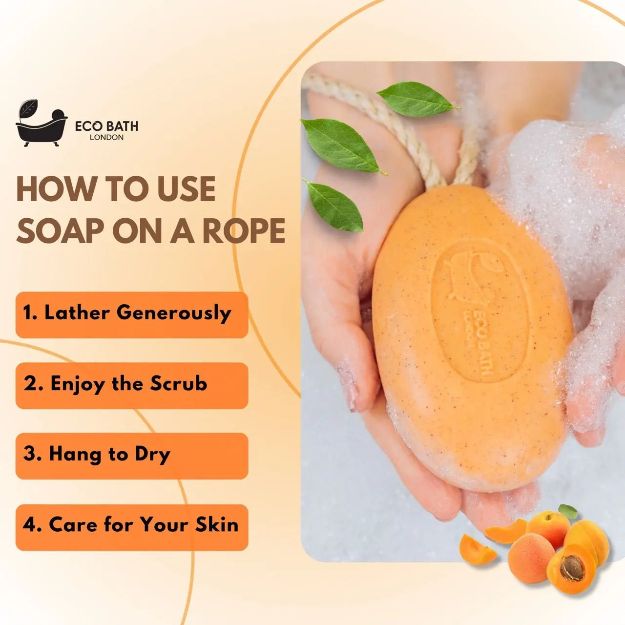 - PORTABLE AND CONVENIENT: Compact and lightweight, the Eco Bath London Apricot Soap on a Rope is perfect for home use or travel, allowing you to maintain your skincare routine wherever you are.