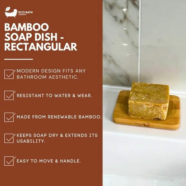 The versatile design makes it perfect for holding bar soap in the bathroom, kitchen, or any sink area, adding a touch of natural elegance wherever you place it. Easy to clean and maintain, the Eco Bath London Bamboo Rectangle Soap Dish is a practical and beautiful solution for your soap storage needs. Simply rinse with water and allow to dry to keep it in excellent condition.