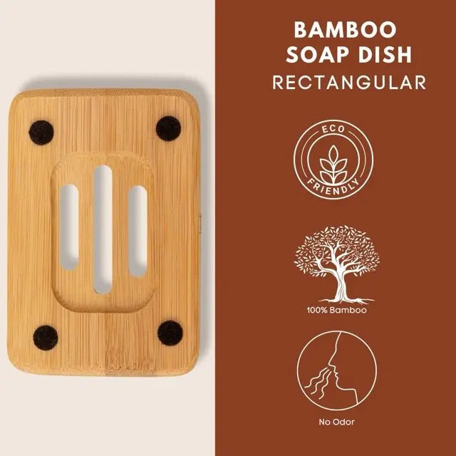 The sleek rectangle design not only looks stylish but also helps to keep your soap dry, preventing it from becoming mushy and prolonging its lifespan. Made from sustainably sourced bamboo, this soap dish is an environmentally conscious choice that supports sustainability. It is built to withstand daily use and is naturally resistant to moisture, ensuring it remains durable and long-lasting.