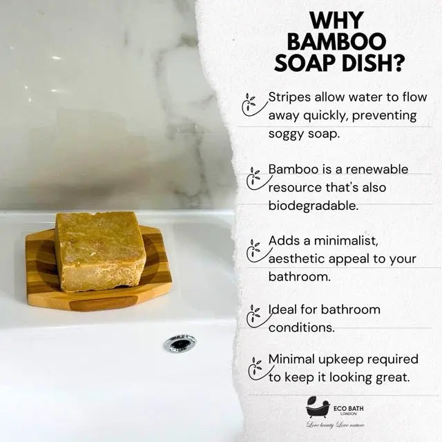 DURABLE AND LONG-LASTING: Bamboo is naturally resistant to moisture and wear, ensuring this soap dish is built to withstand daily use and remain long-lasting.