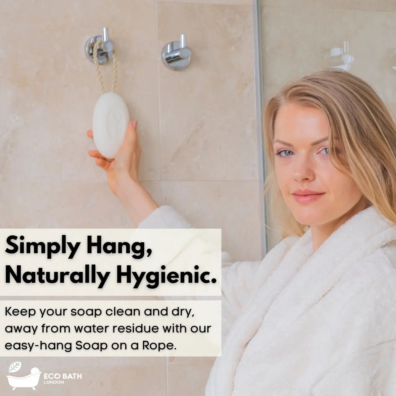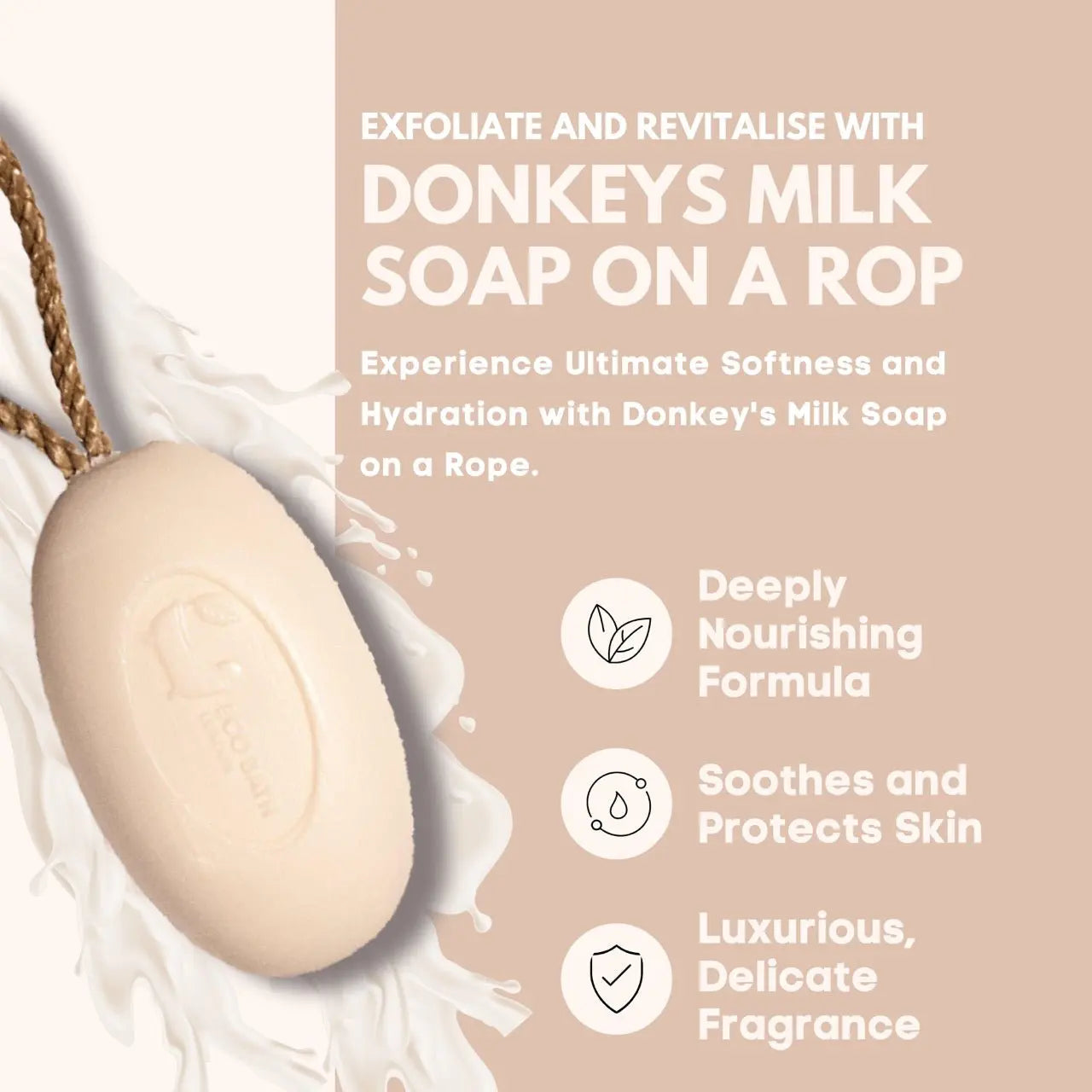 - LUXURIOUS DONKEY’S MILK: Enriched with the unique benefits of donkey’s milk, the Eco Bath Soap on a Rope provides a luxurious and soothing shower experience.