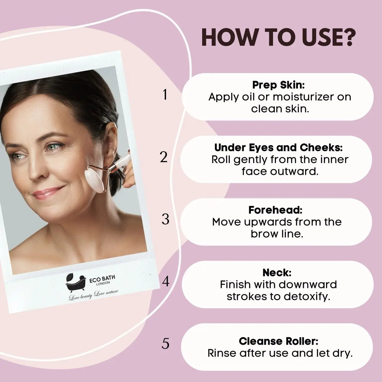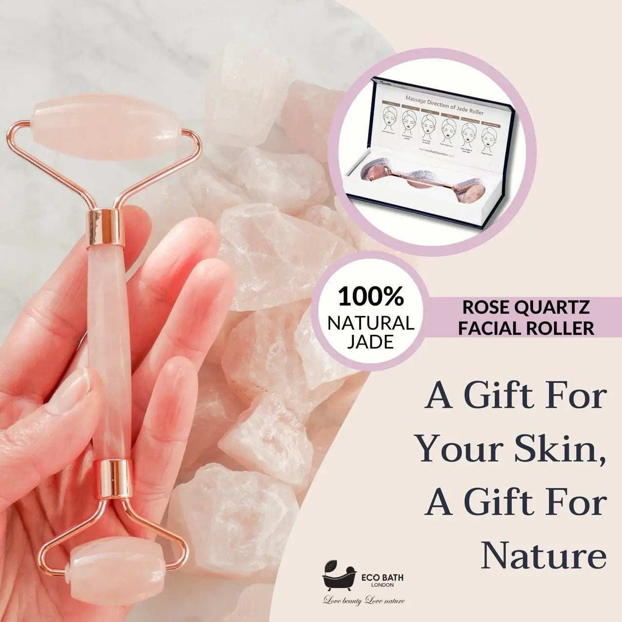 Eco Bath London Jade Face Roller – Rose Quartz | Relaxing, Natural & Travel-Friendly
