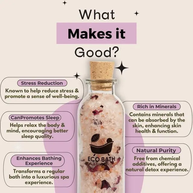 Indulge in a luxurious and soothing bath experience with the Eco Bath London Rose Himalayan Bath Salt. This premium blend combines pure, mineral-rich pink Himalayan salt with the delicate scent of rose, bringing the serenity of a spa directly into your home. Each 300g jar is crafted to detoxify the body, relieve muscle tension, and soften the skin, leaving you feeling refreshed and rejuvenated.