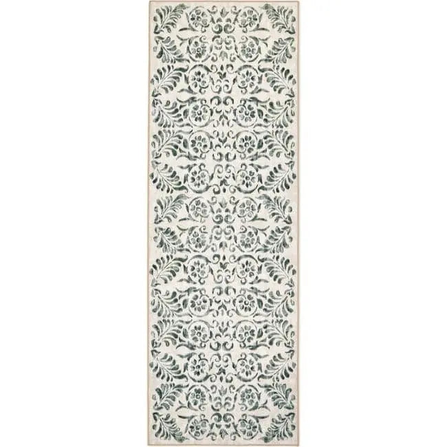 Eco-Washable Beige and Green Rug Floral Design blends timeless elegance with modern convenience. Featuring an intricately detailed floral design, it showcases a soft beige background adorned with a repeating green pattern, adding a touch of classic charm to any space. Its stain-resistant, washable surface and non-slip backing make it an ideal choice for busy homes. The soft recycled polyester pile feels comfortable underfoot, while the natural rubber backing ensures a secure, non-slip surface.