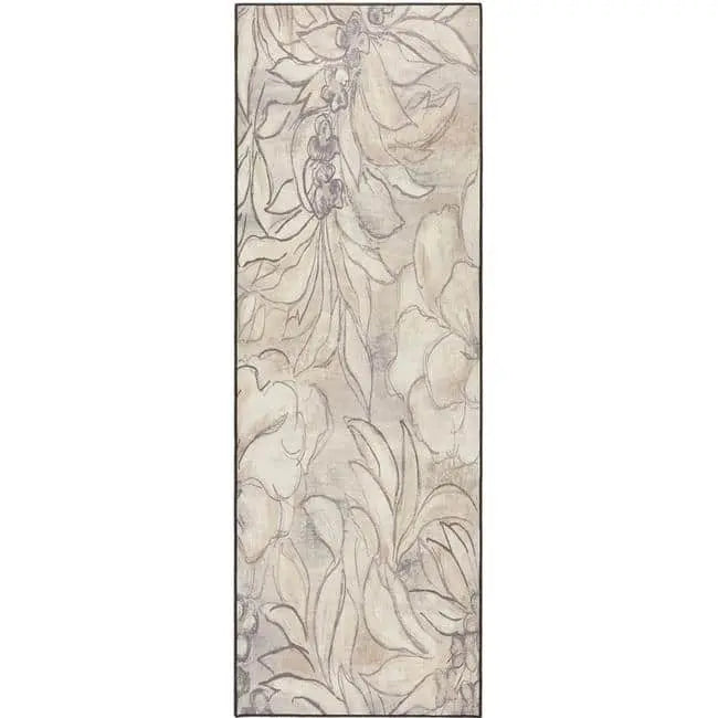 The Eco-Washable Cream Rug in Floral Design blends timeless elegance with modern convenience. Inspired by British flora and fauna, this rug features hand-painted abstract florals with sweeping brushstrokes and rich texture. The oversized floral design showcases soft tones of grey, beige, and white highlights, creating a sophisticated and artistic look. Finished with charcoal tape, this rug complements both modern and traditional interiors.The soft recycled polyester pile feels comfortable underfoot, while the natural rubber backing ensures a secure, non-slip surface.