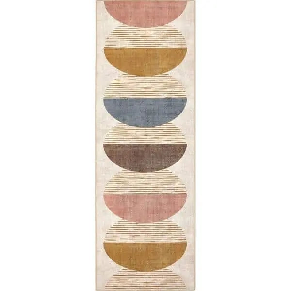 The Eco-Washable Rug Geometric Design blends contemporary design with everyday practicality. Featuring an elegant arrangement of interlocking oval shapes, it showcases earthy tones of beige, pink, and brown for a warm and sophisticated look. Crafted from recycled materials, the soft polyester pile offers a plush feel underfoot, while the natural rubber backing ensures a secure, non-slip surface. Stain-resistant and washable, this rug is a stylish yet durable choice, perfect for busy homes seeking both comfort and modern design.