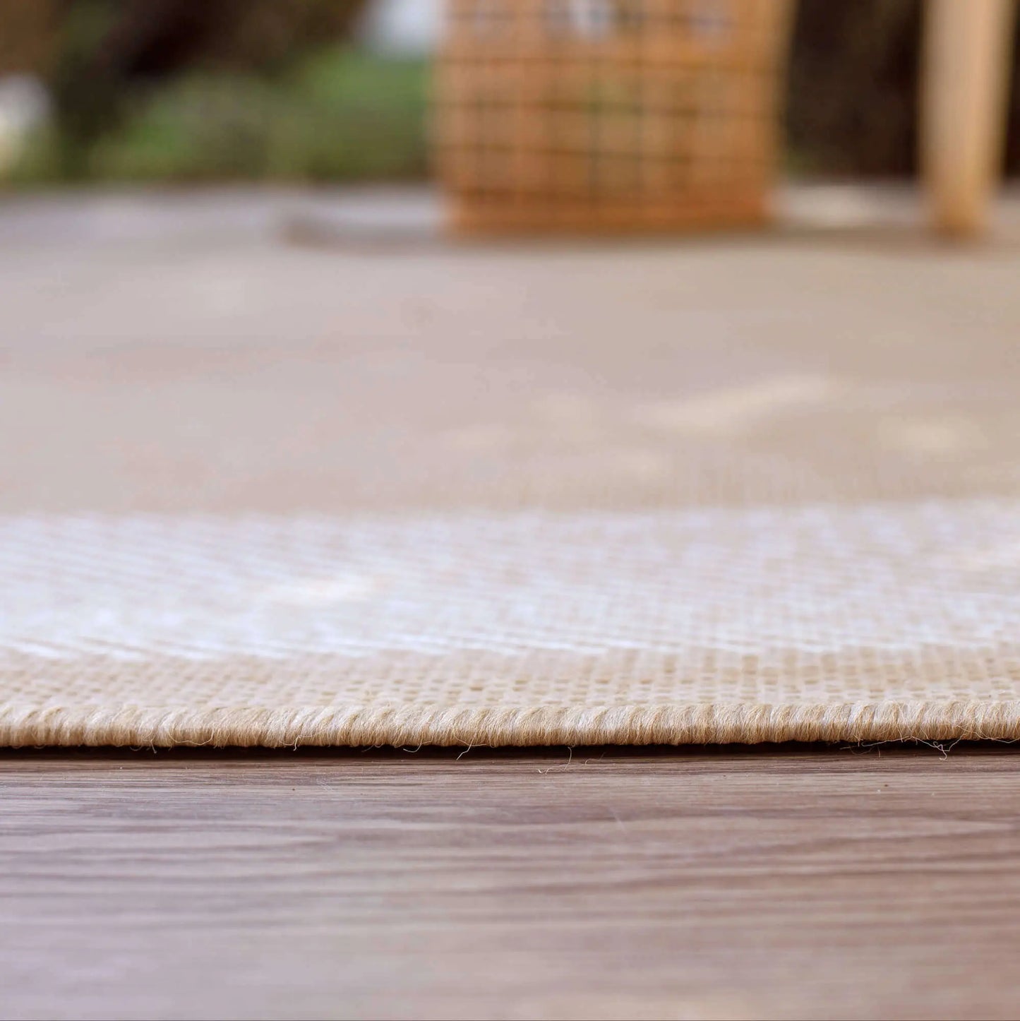 Bordered Design Outdoor Rug for Garden Beige is extremely versatile and multifunctional: their colourful designs and stripes bring a refreshing variation in the gardens, patio, conservatory or even sometimes indoors.