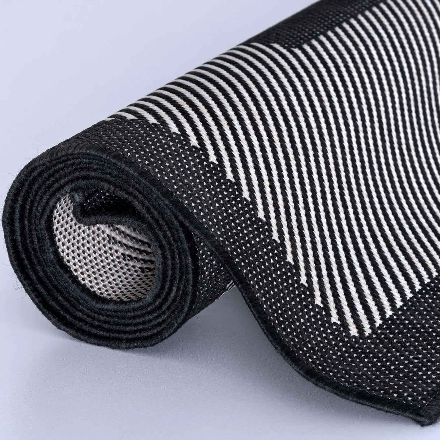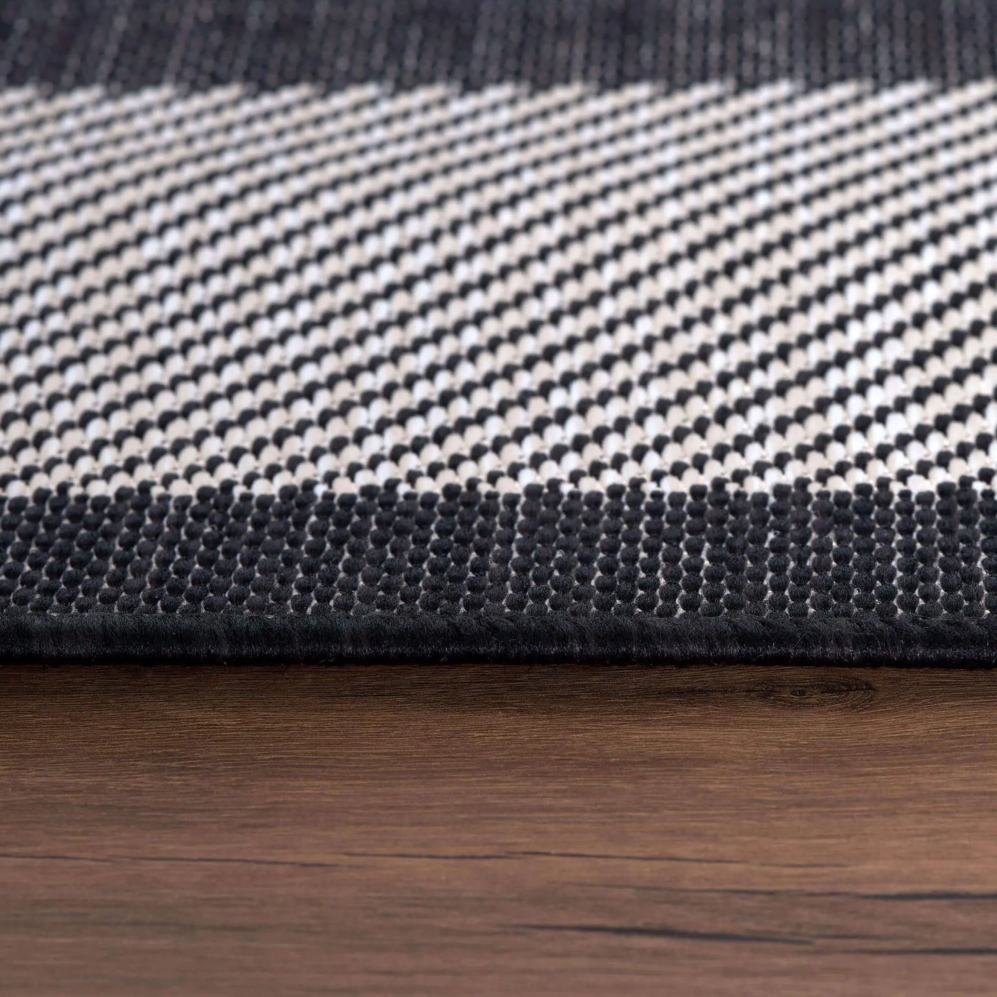 Bordered Design Outdoor Rug for Garden Black is extremely versatile and multifunctional: their colourful designs and stripes bring a refreshing variation in the gardens, patio, conservatory or even sometimes indoors.