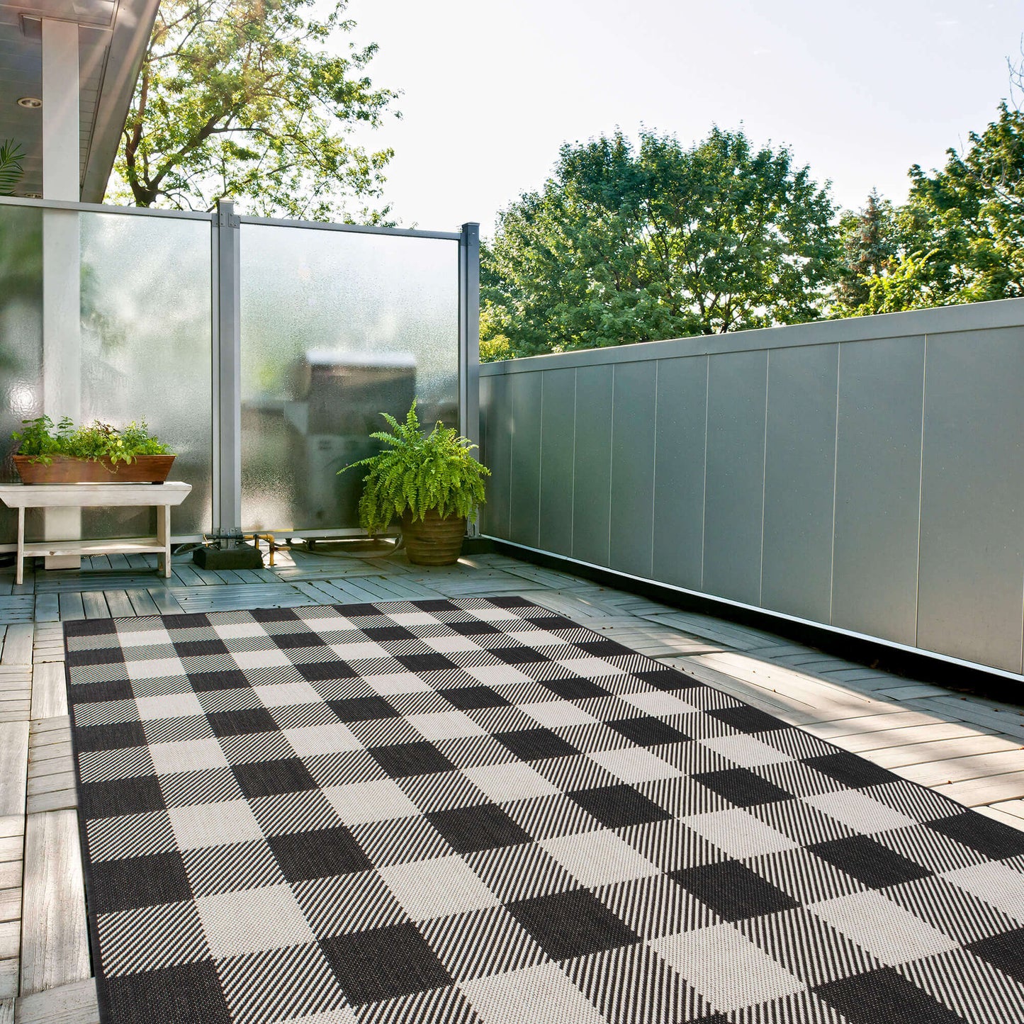 Regular price £34.99Black Checkered Outdoor Rug for Garden is extremely versatile and multifunctional: their colourful designs and stripes bring a refreshing variation in the gardens, patio, conservatory or even sometimes indoors.