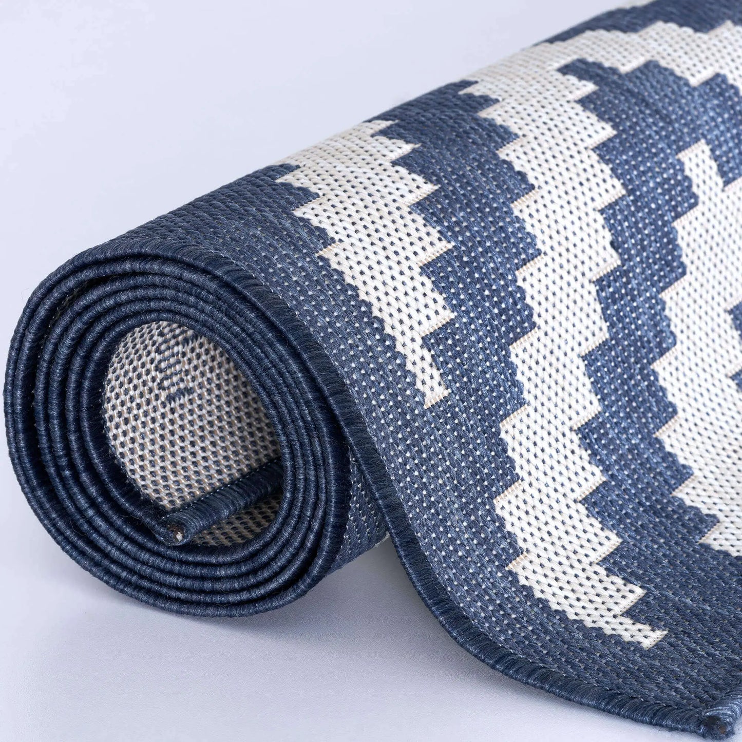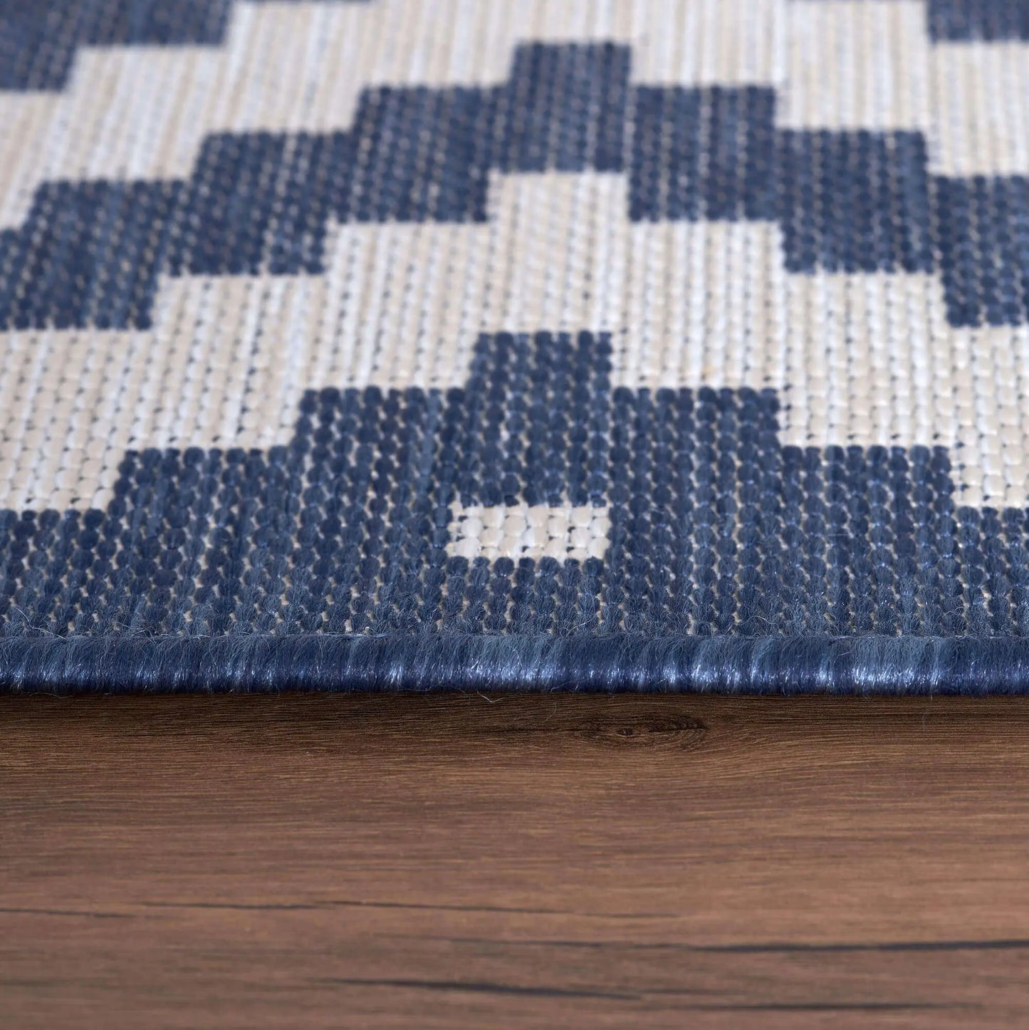 Diamond Design Blue and White Outdoor Rug is extremely versatile and multifunctional: their colourful designs and stripes bring a refreshing variation in the gardens, patio, conservatory or even sometimes indoors.