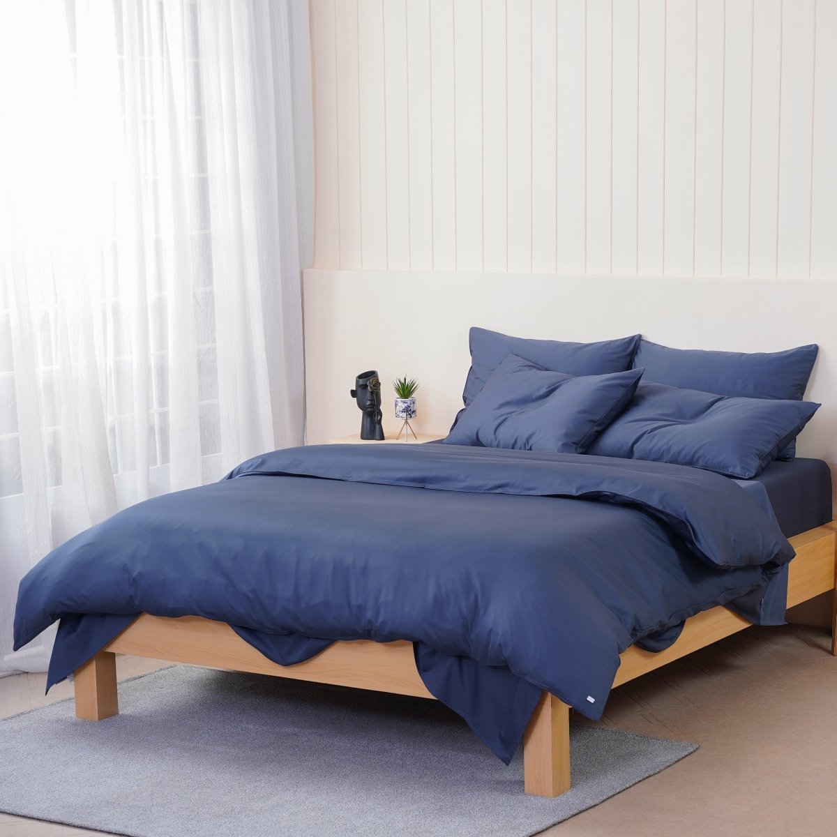 The deep midnight blue hue adds a classic yet contemporary aesthetic, bringing a harmonious balance to any bedroom décor. Designed with thoughtful details like invisible buttons on the duvet cover, deep inner flaps on the pillowcases, and 41cm deep pockets with wide elastic on the fitted sheet, this bedding set combines practicality with sophistication.