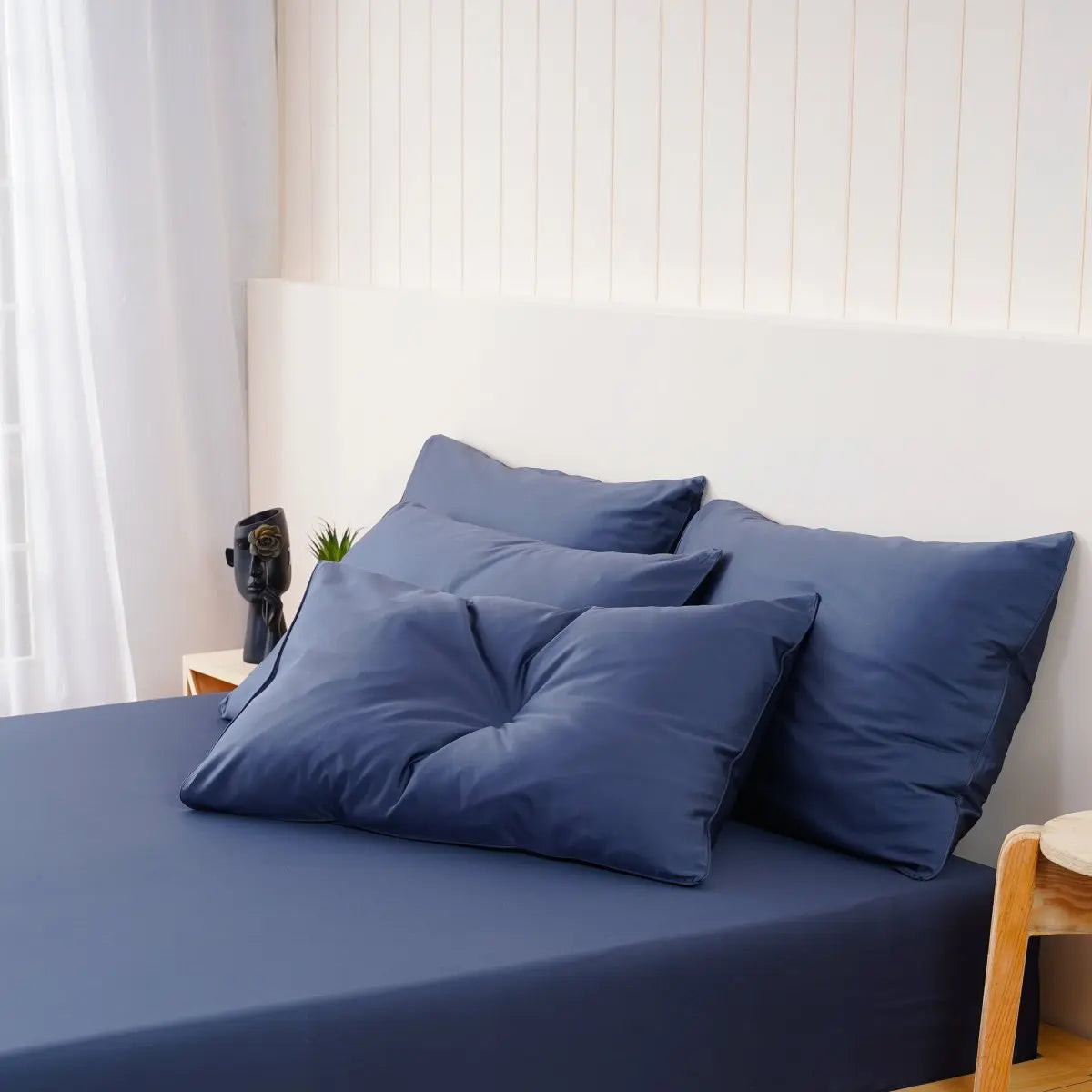 The deep midnight blue hue adds a classic yet contemporary aesthetic, bringing a harmonious balance to any bedroom décor. Designed with thoughtful details like deep inner flaps to keep pillows neatly enclosed, these pillowcases combine practicality with sophistication.
